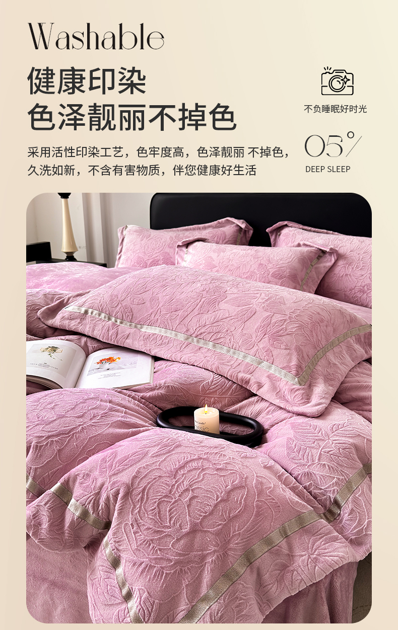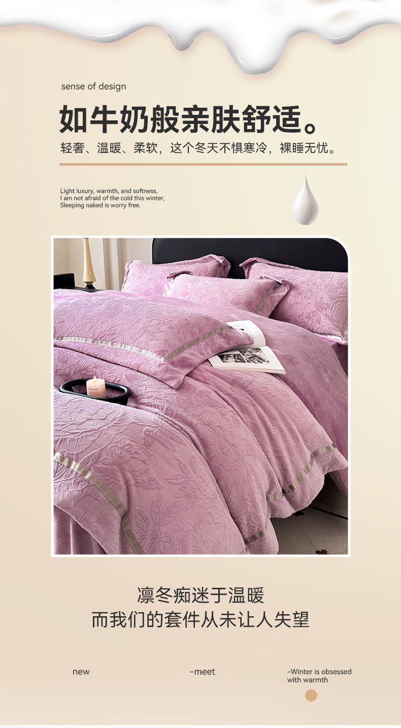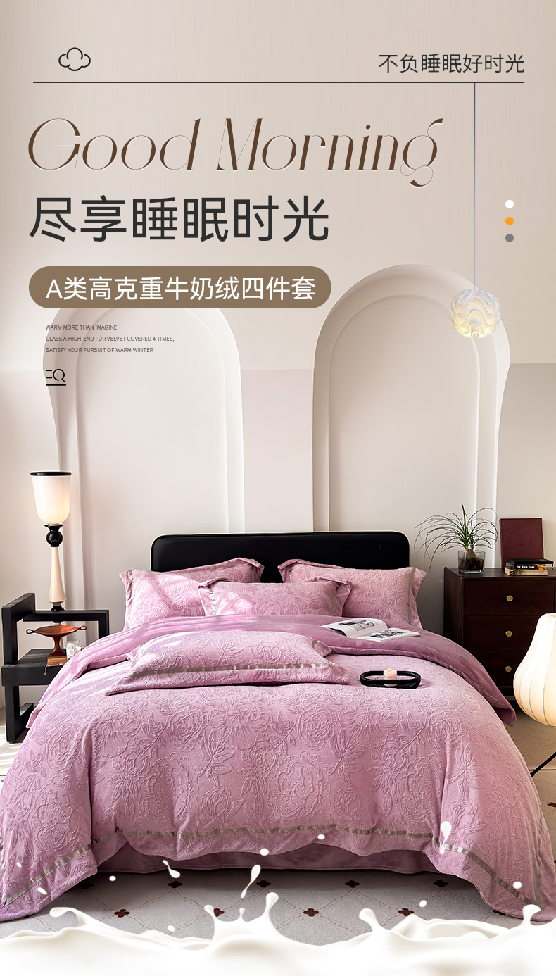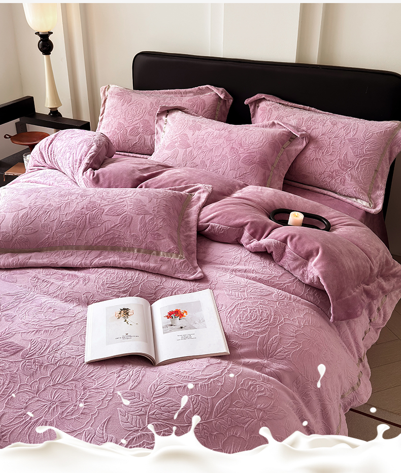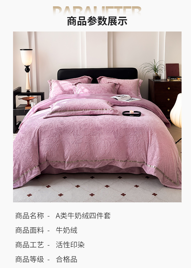 (总)家居1号家纺 2025新款230克全消光瑞丽牛奶绒烂花四件套(控价标准258加大278 会员优惠10元),瑞丽-卡其,瑞丽-苹果绿,瑞丽-绅士灰,瑞丽-温馨蓝,瑞丽-雅粉,瑞丽-优雅紫