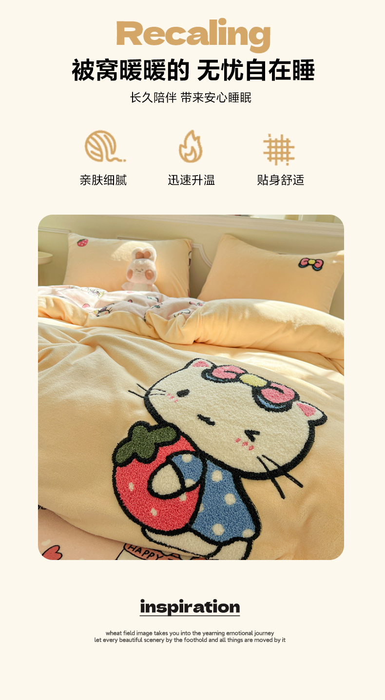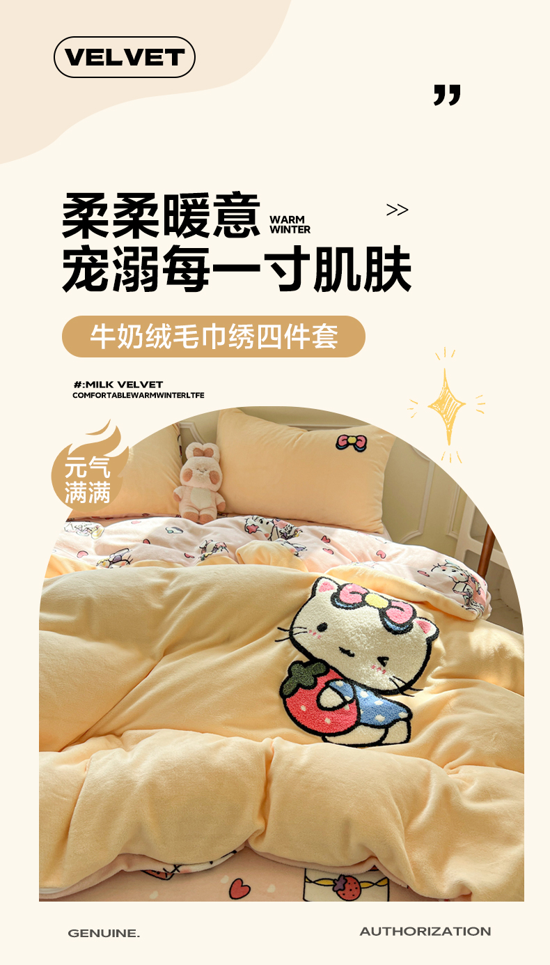 当前位置: 91家纺网 > 商品网购 > 床品套件 > 四件套 > 牛奶绒四件套 > 盼季家纺 2024新款高克重印花卡通牛奶绒毛巾绣四件套-风格一 绒-曲奇饼干