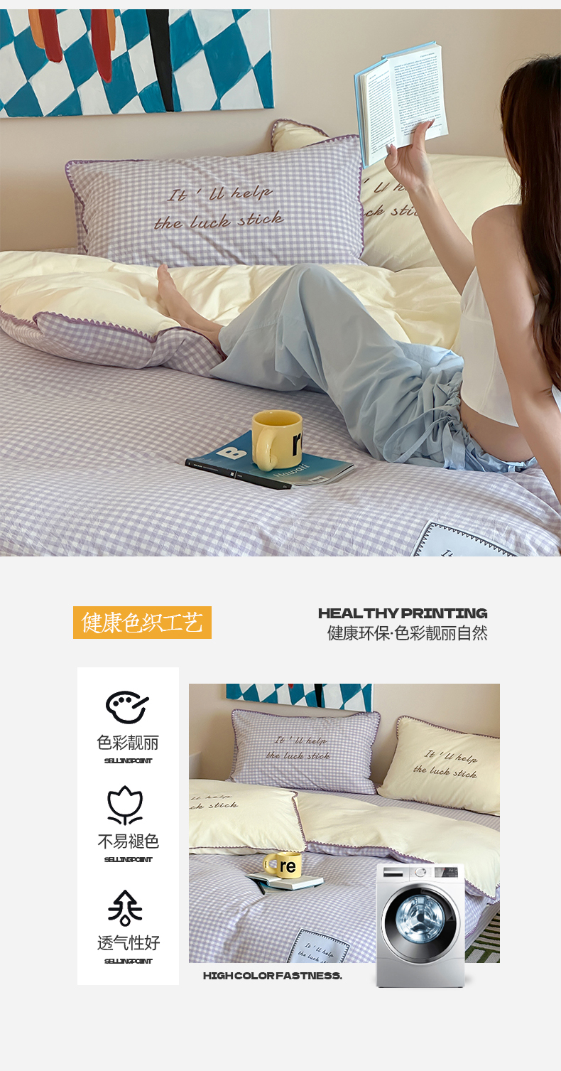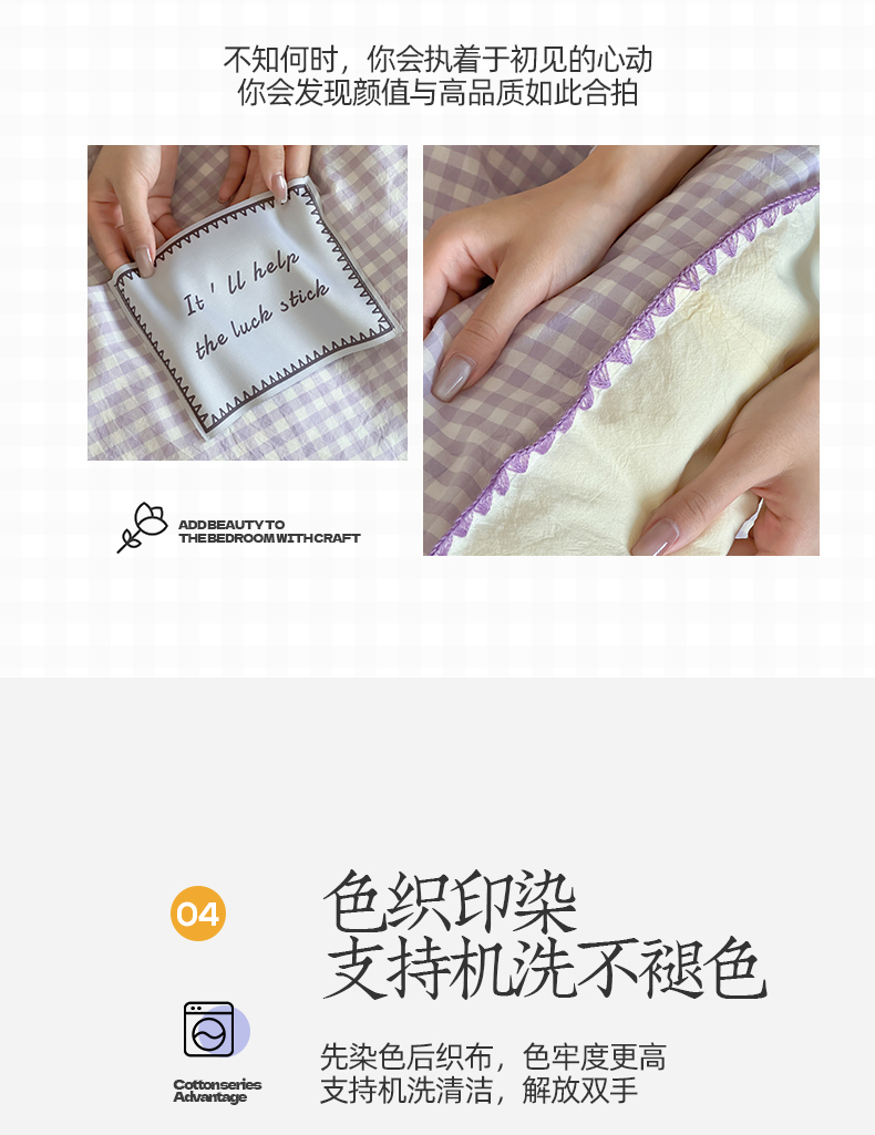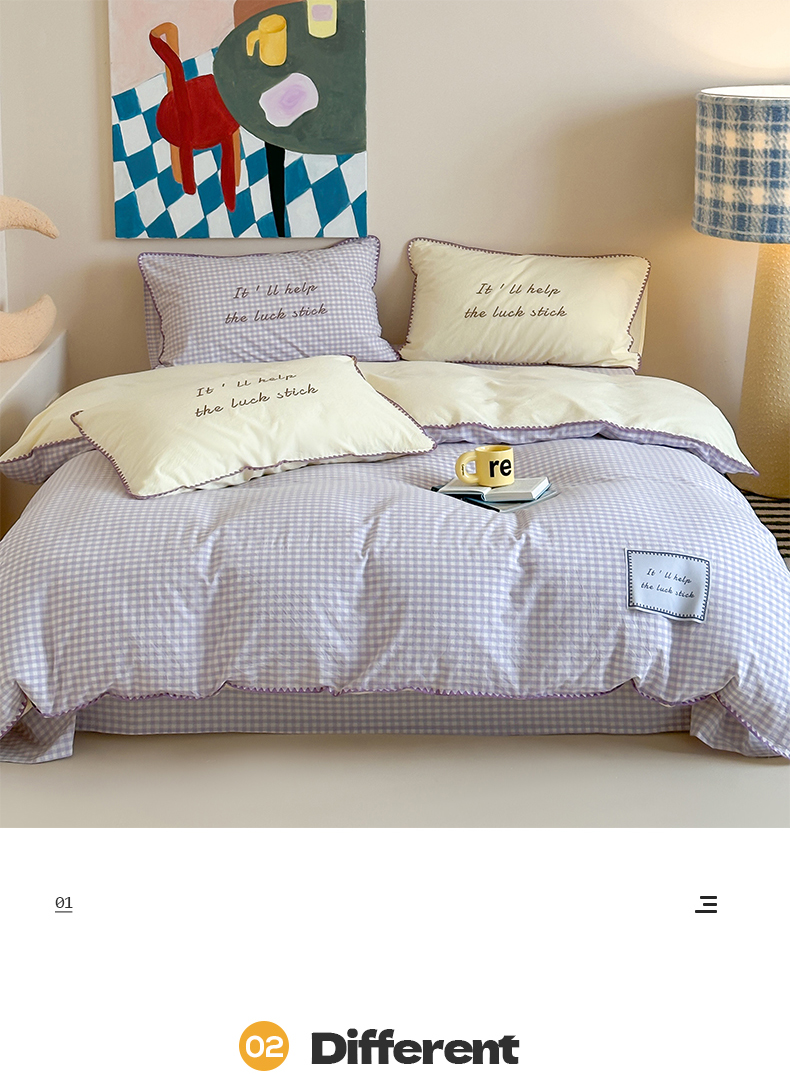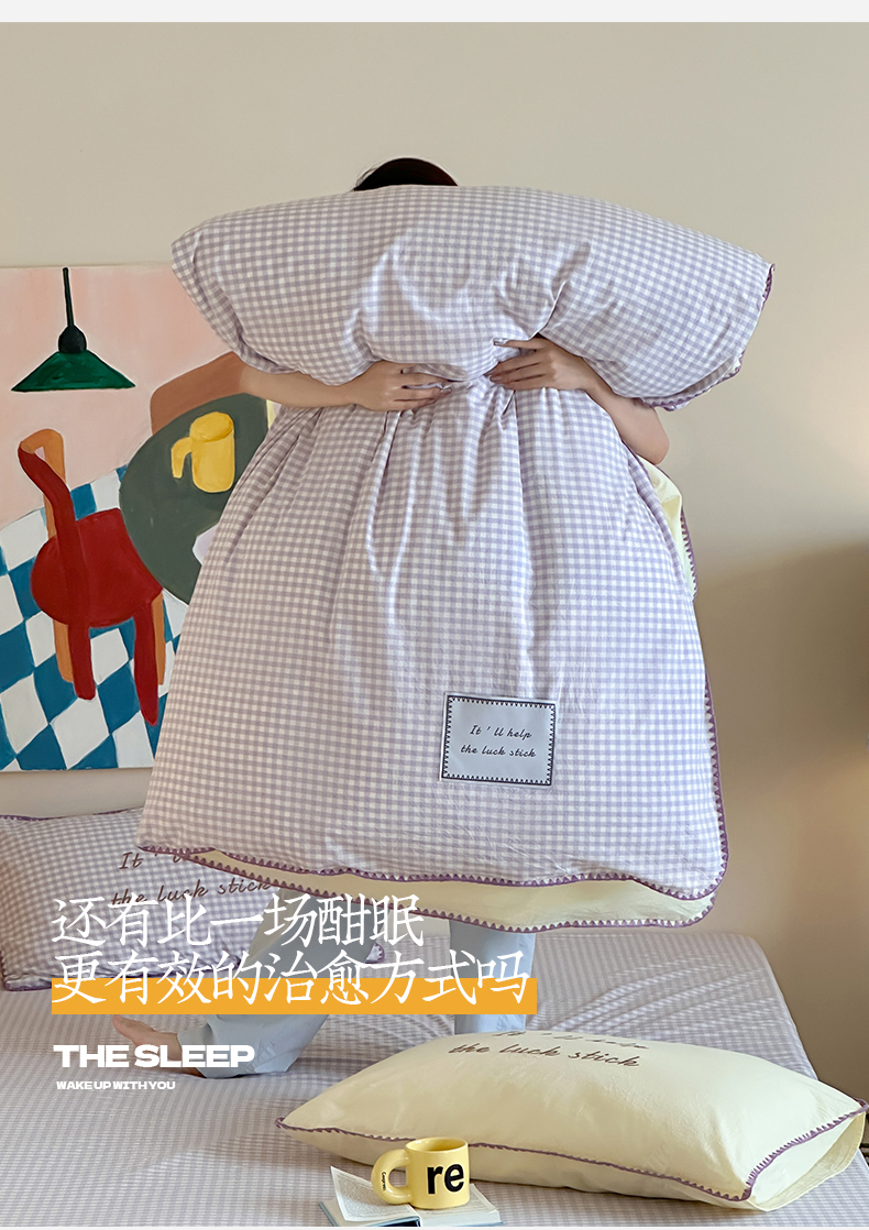 当前位置: 91家纺网 > 商品网购 > 床品套件 > 四件套 > 水洗棉四件套 > 桃子家居 2025新款A类ins纯棉色织水洗棉三角针贝壳工艺撞色织标刺绣系列四件套 棉三角针-S奶缇紫紫格