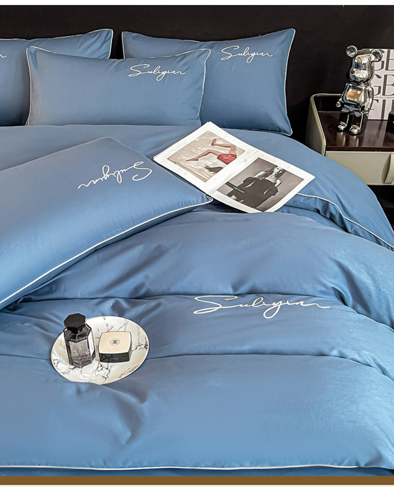 当前位置: 91家纺网 > 商品网购 > 床品套件 > 四件套 > 全棉普通四件套 > 一帆毯业 2024新款全棉纯色刺绣麻绳滚边四件套 玫瑰粉+浅灰