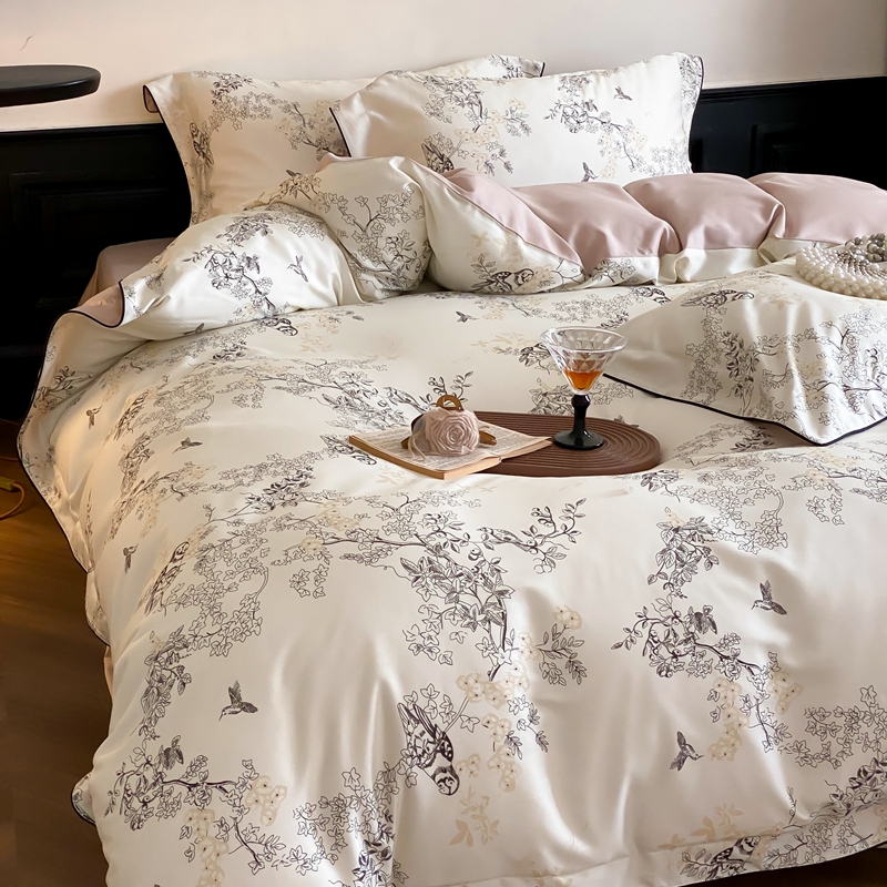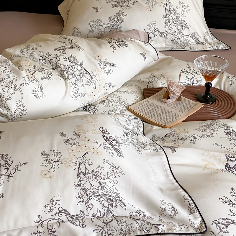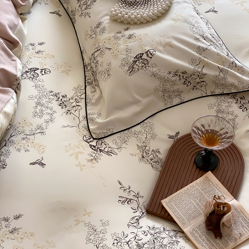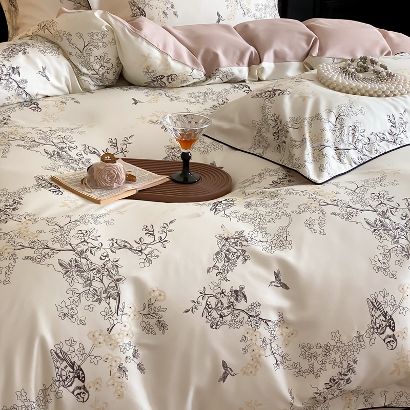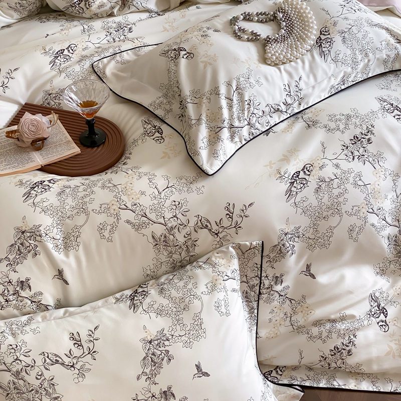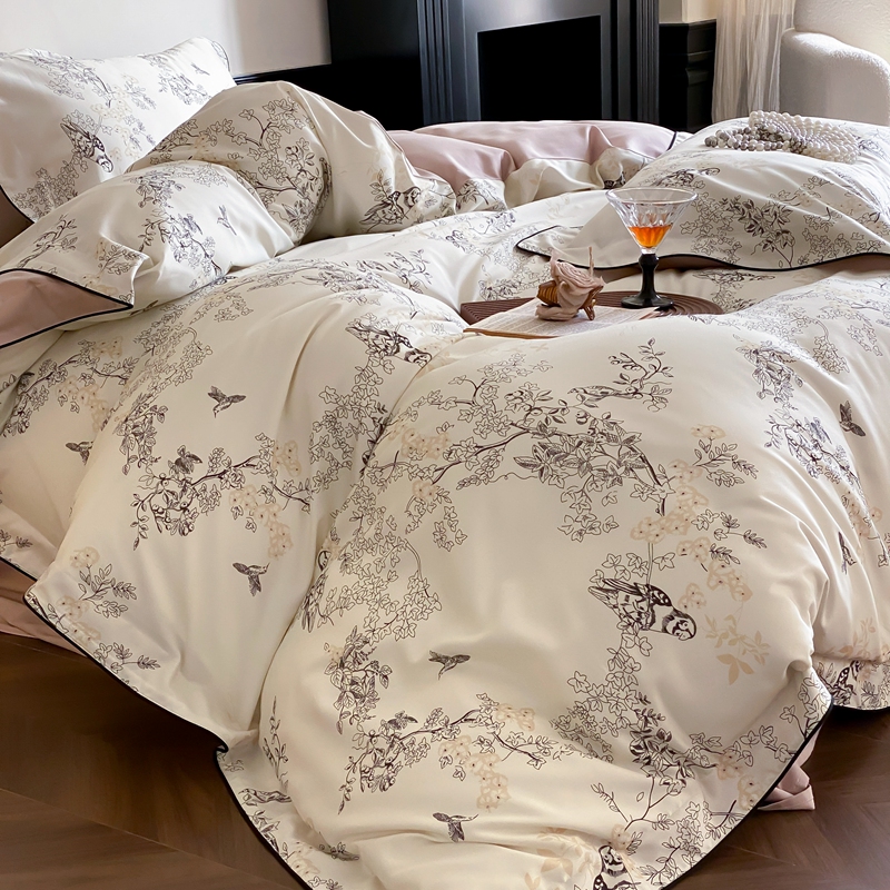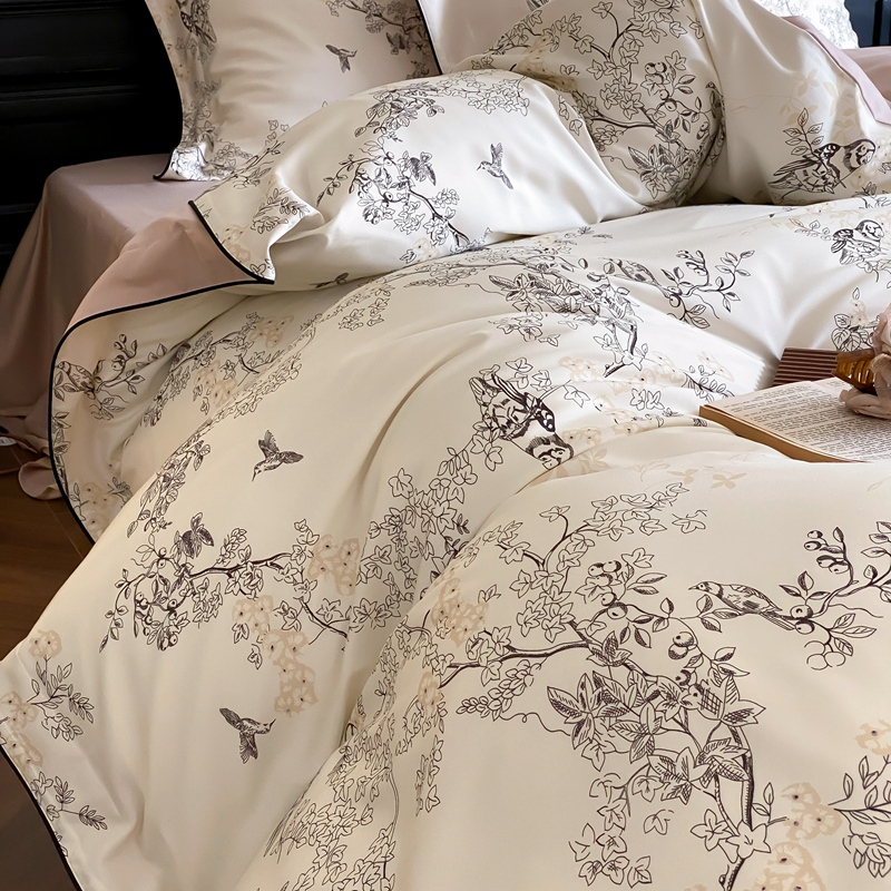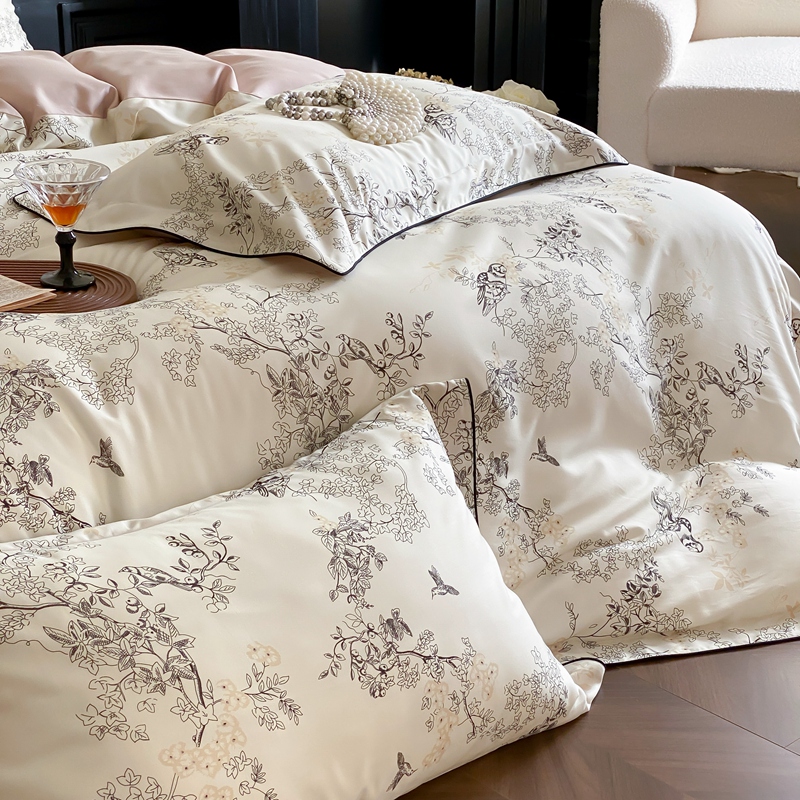 商品名称:赫帛 2024新款60s数码印花天丝棉磨毛四件套-栖息 栖息-米白色