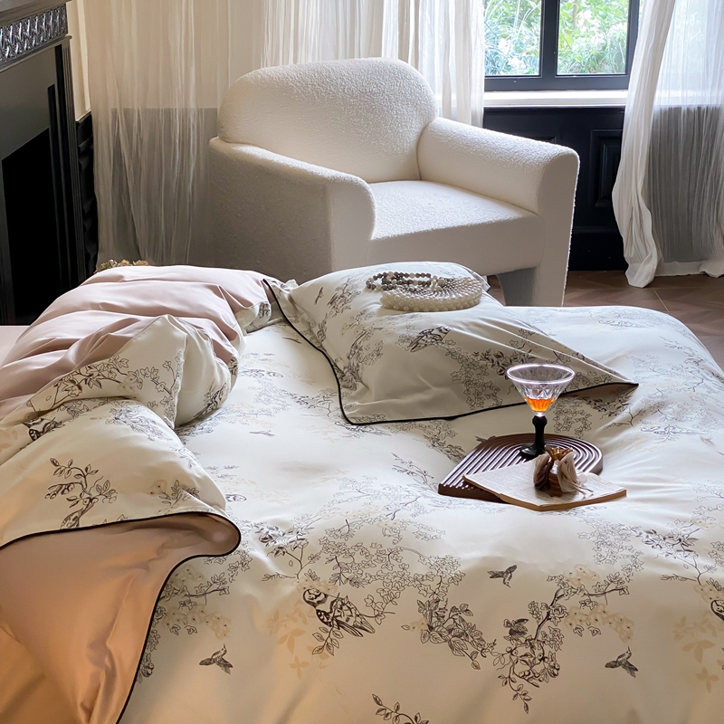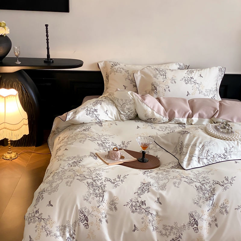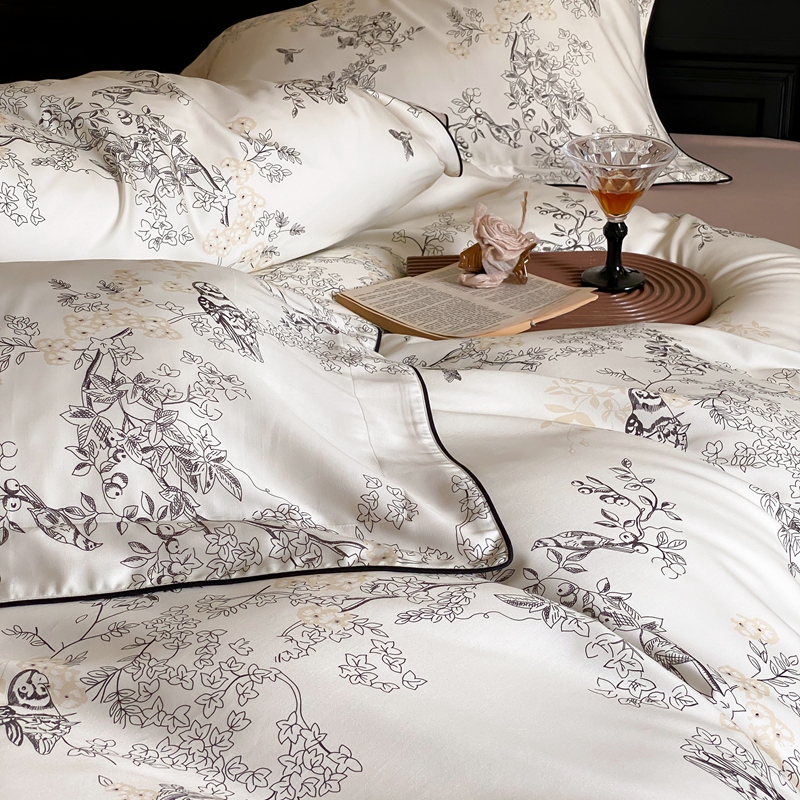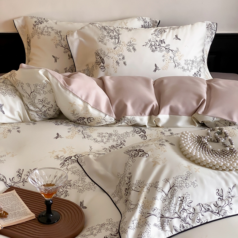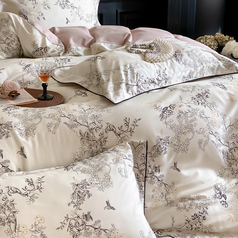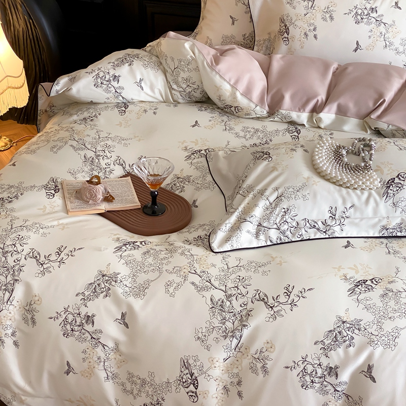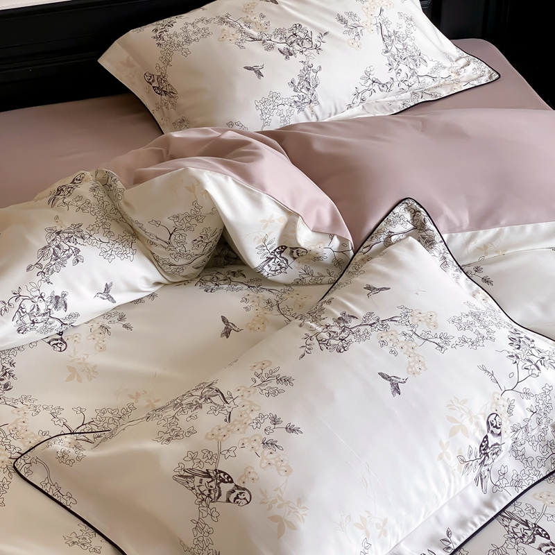 商品名称:赫帛 2024新款60s数码印花天丝棉磨毛四件套-栖息 栖息-米白色
