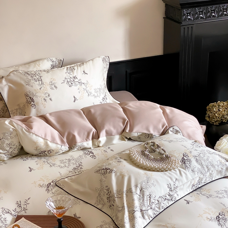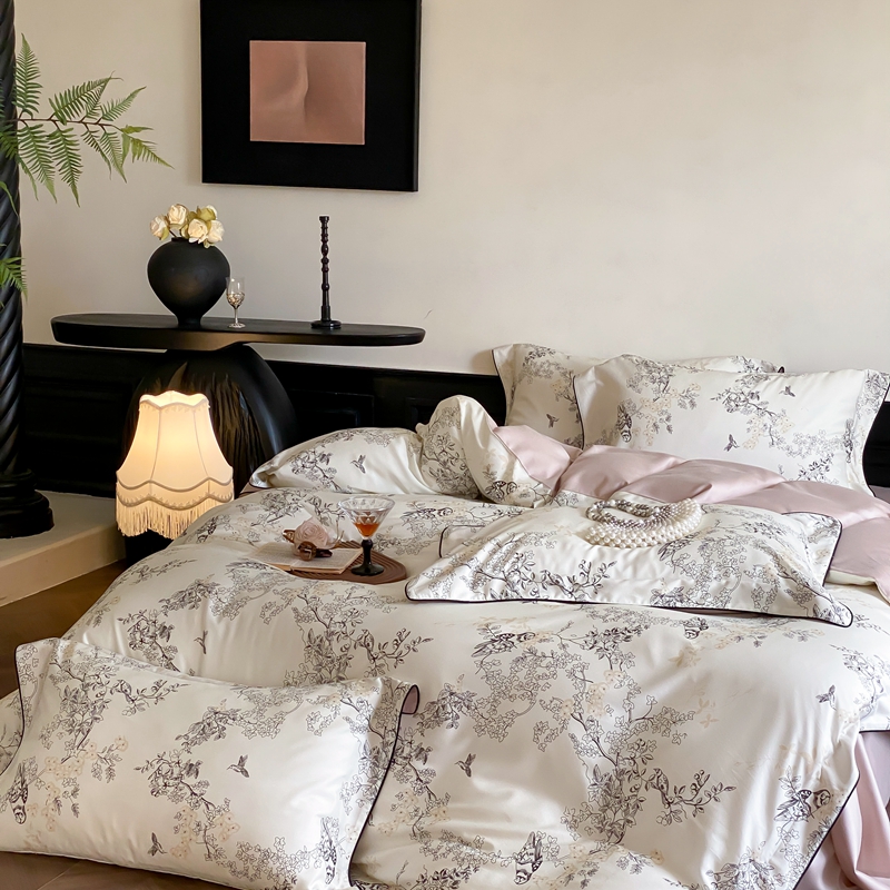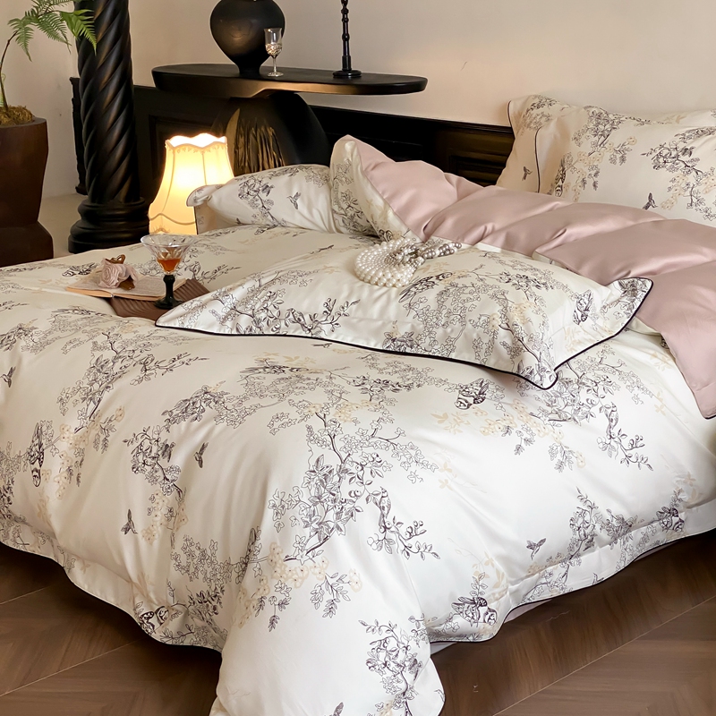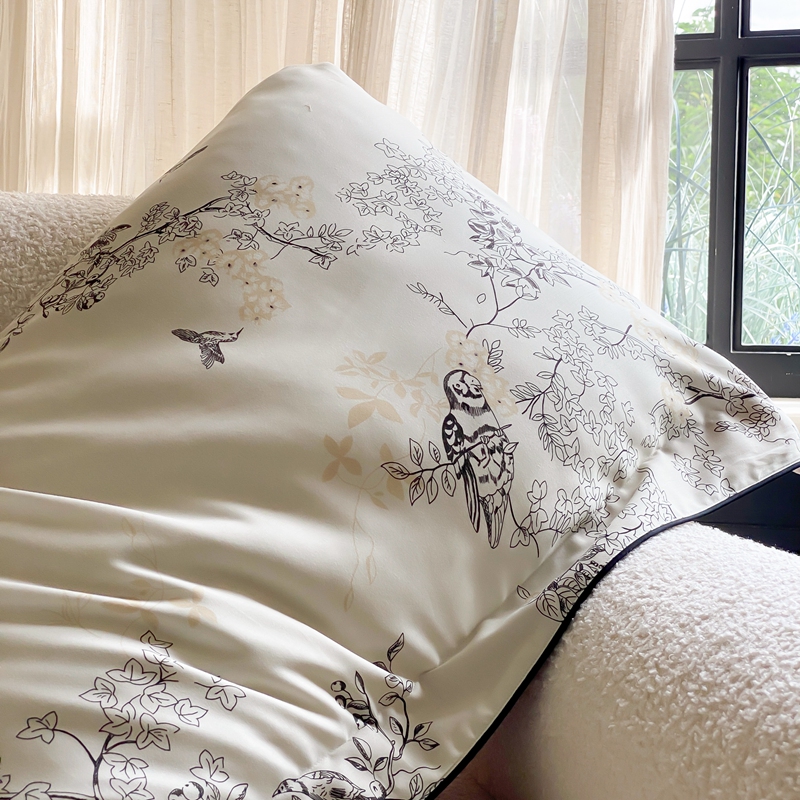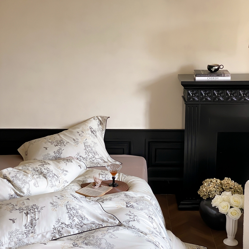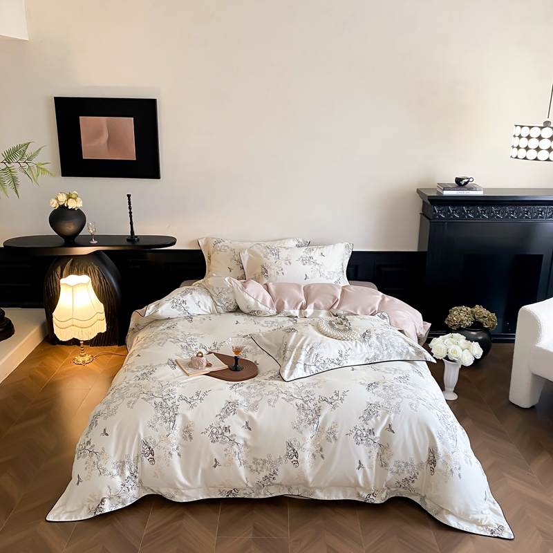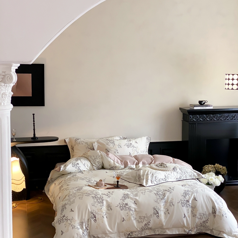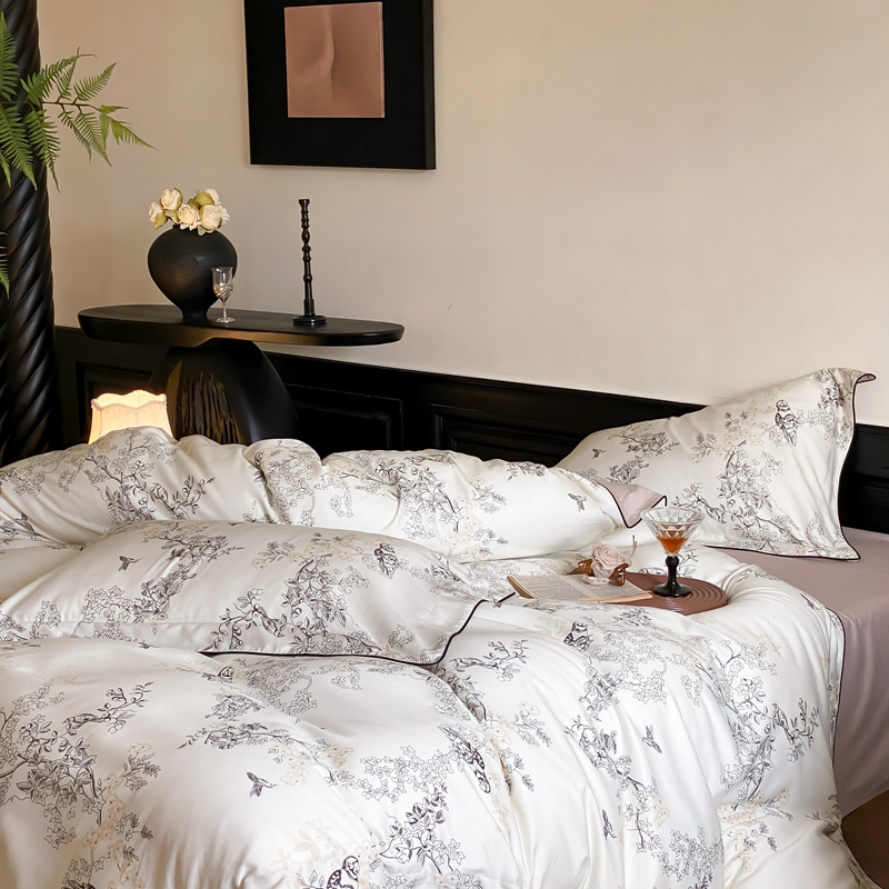 商品名称:赫帛 2024新款60s数码印花天丝棉磨毛四件套-栖息 栖息-米白色
