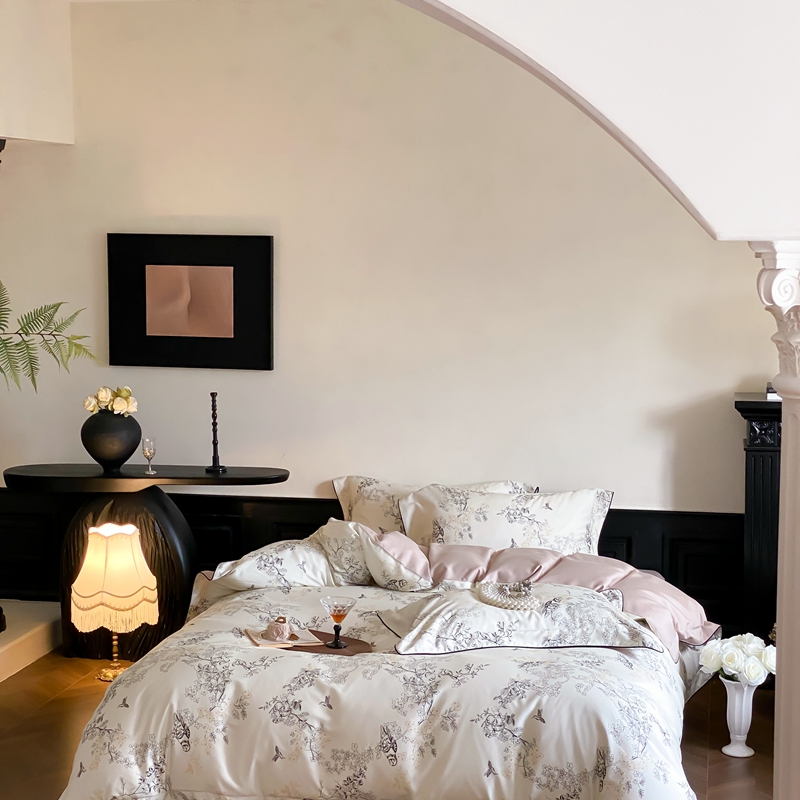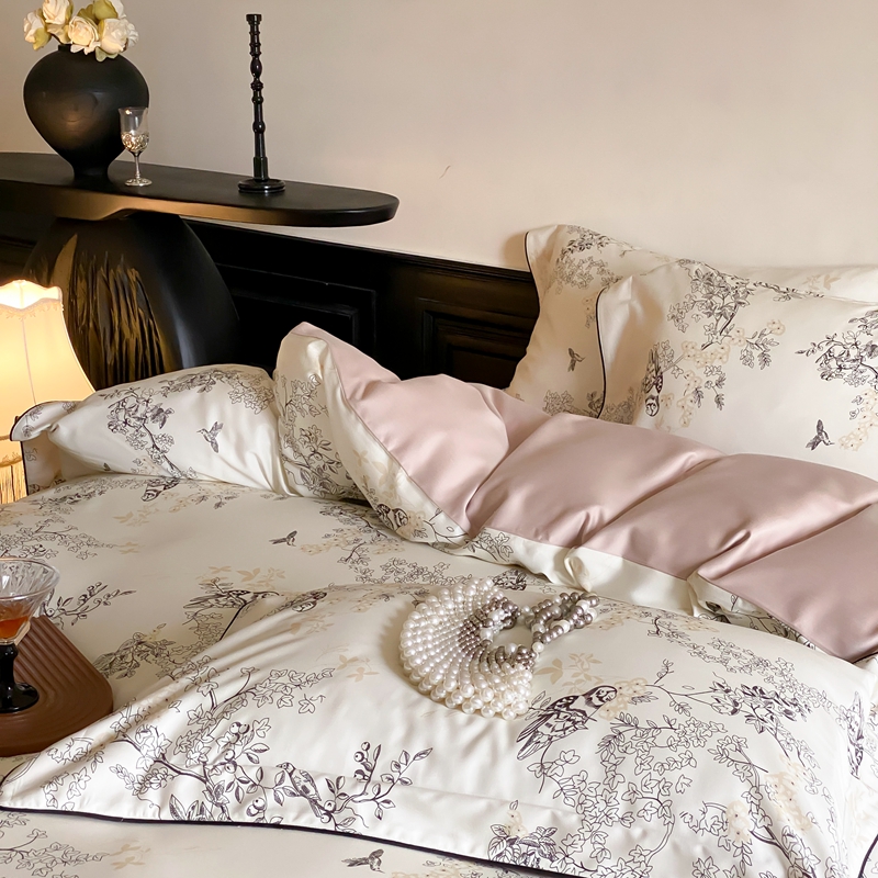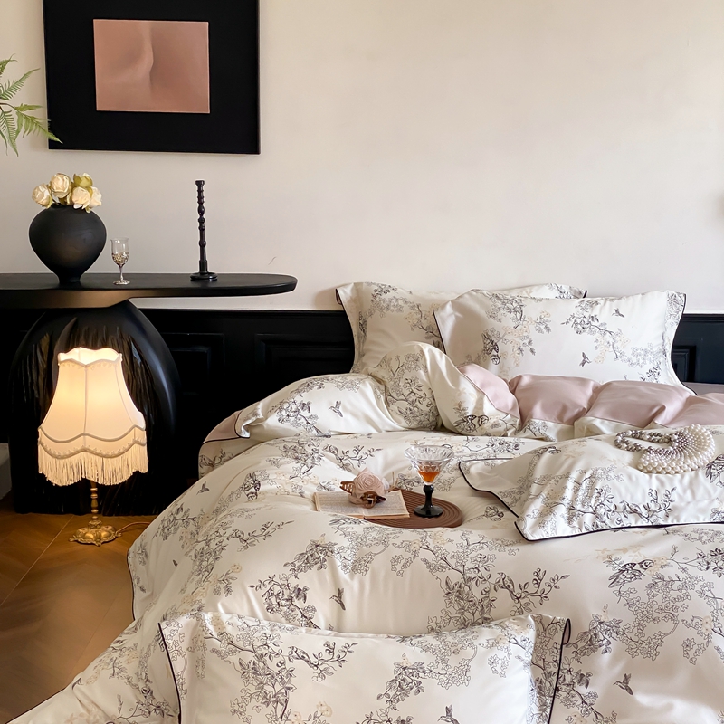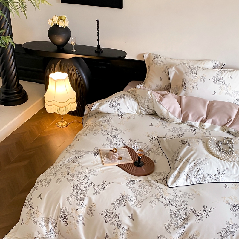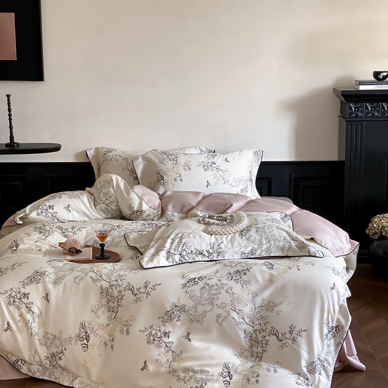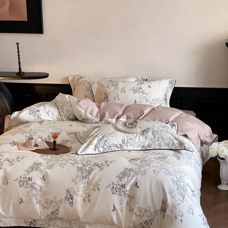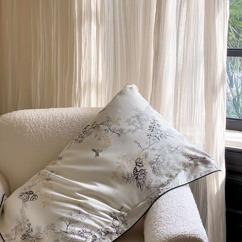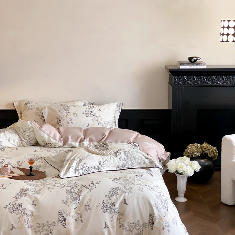 商品名称:赫帛 2024新款60s数码印花天丝棉磨毛四件套-栖息 栖息-米白色