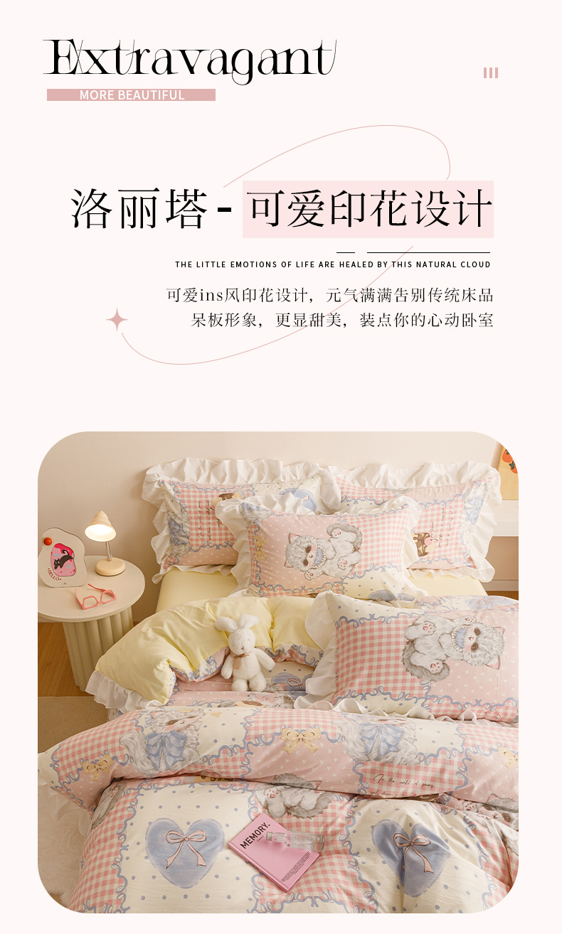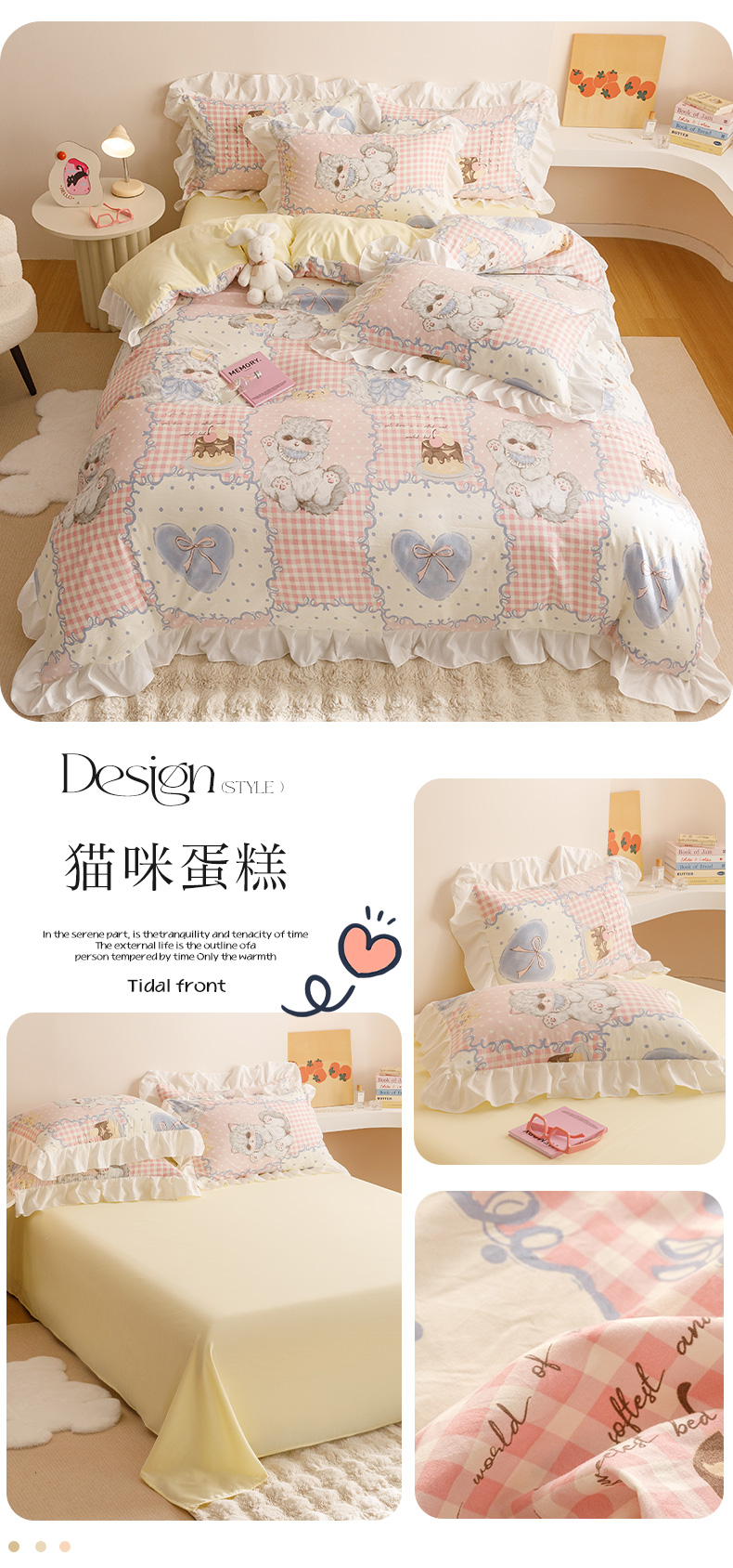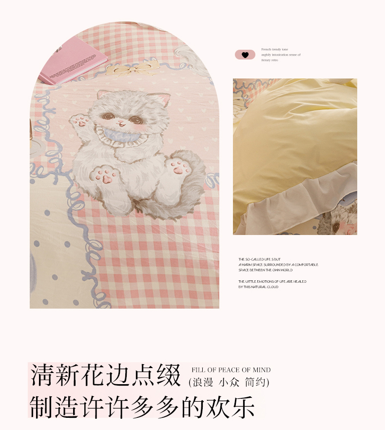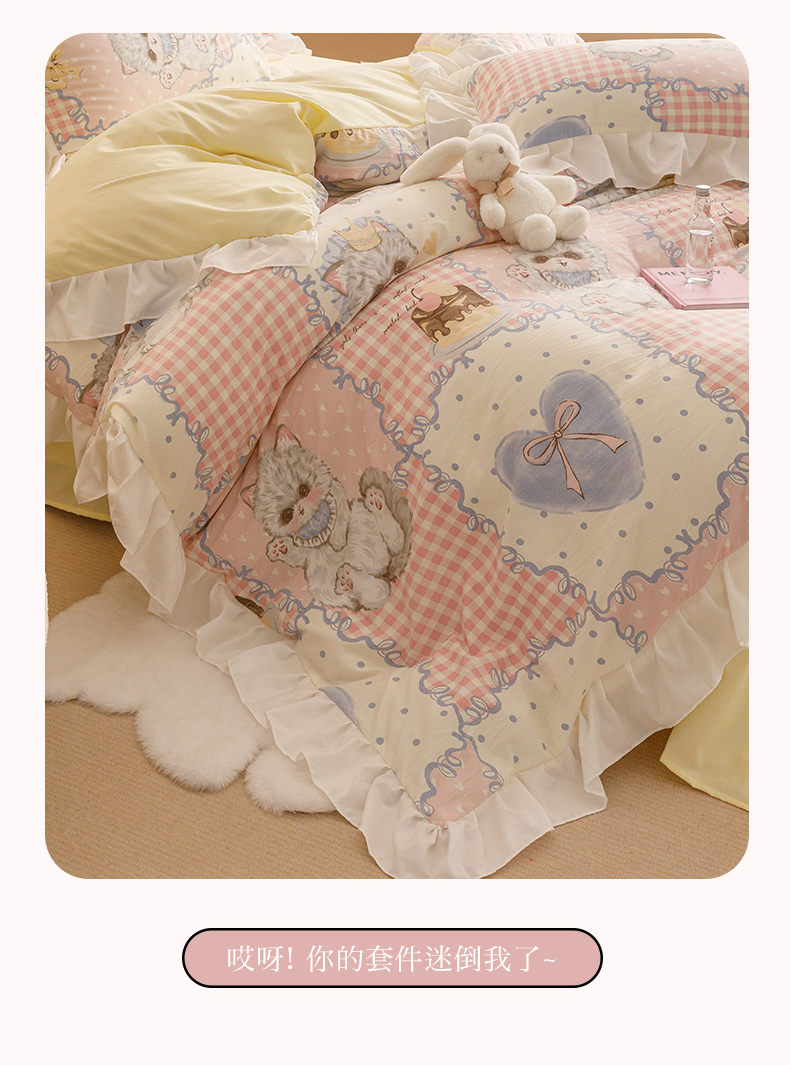 当前位置: 91家纺网 > 商品网购 > 床品套件 > 四件套 > 其它四件套 > 罗亿家纺 2025新款洛丽塔云朵棉花边四件套场景二(提供买家秀) 猫咪蛋糕