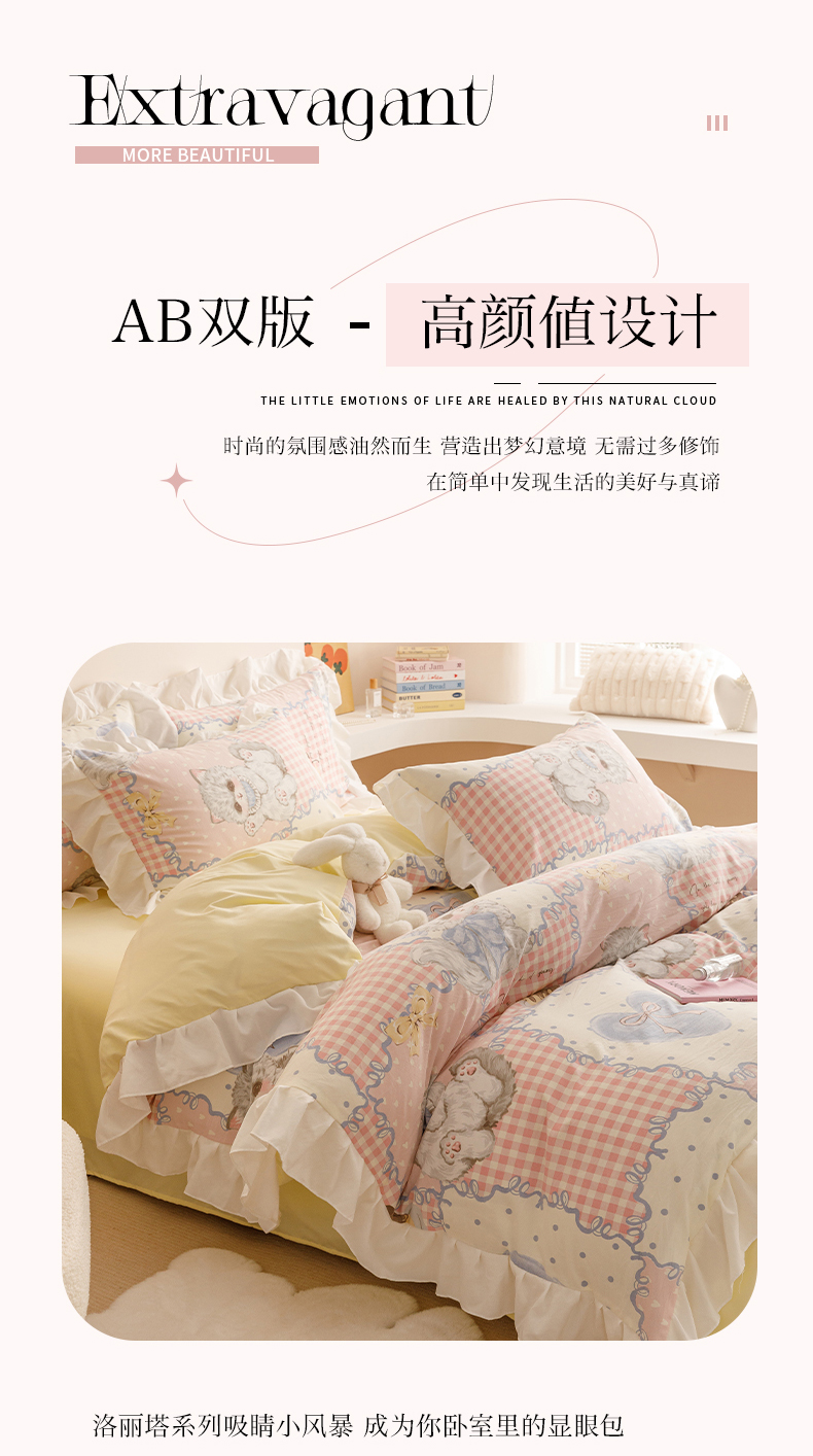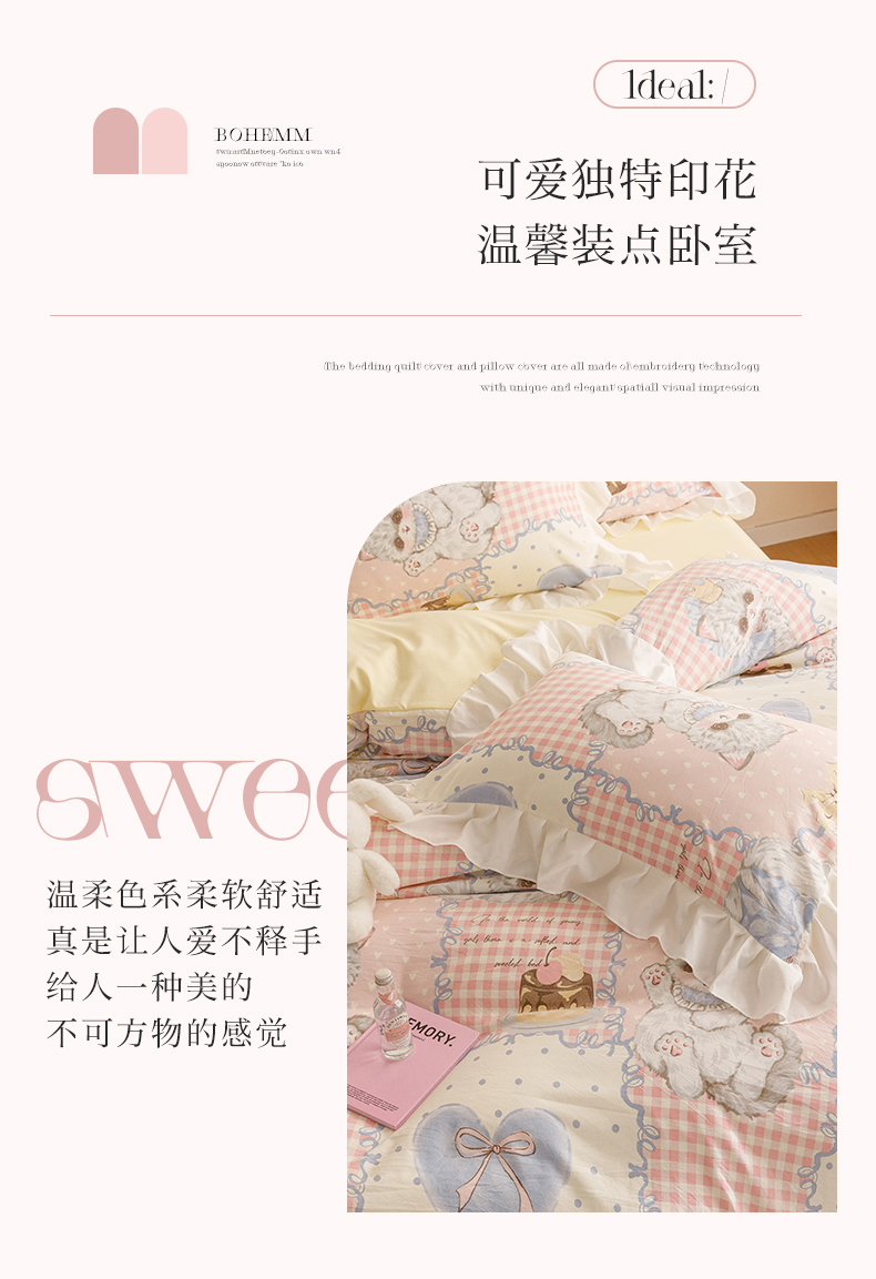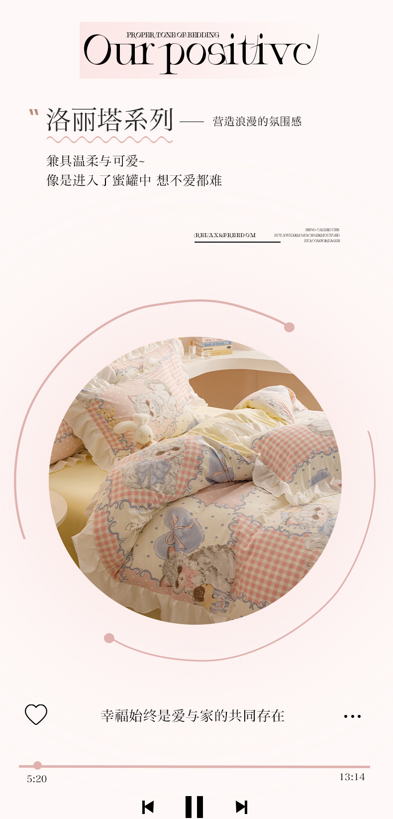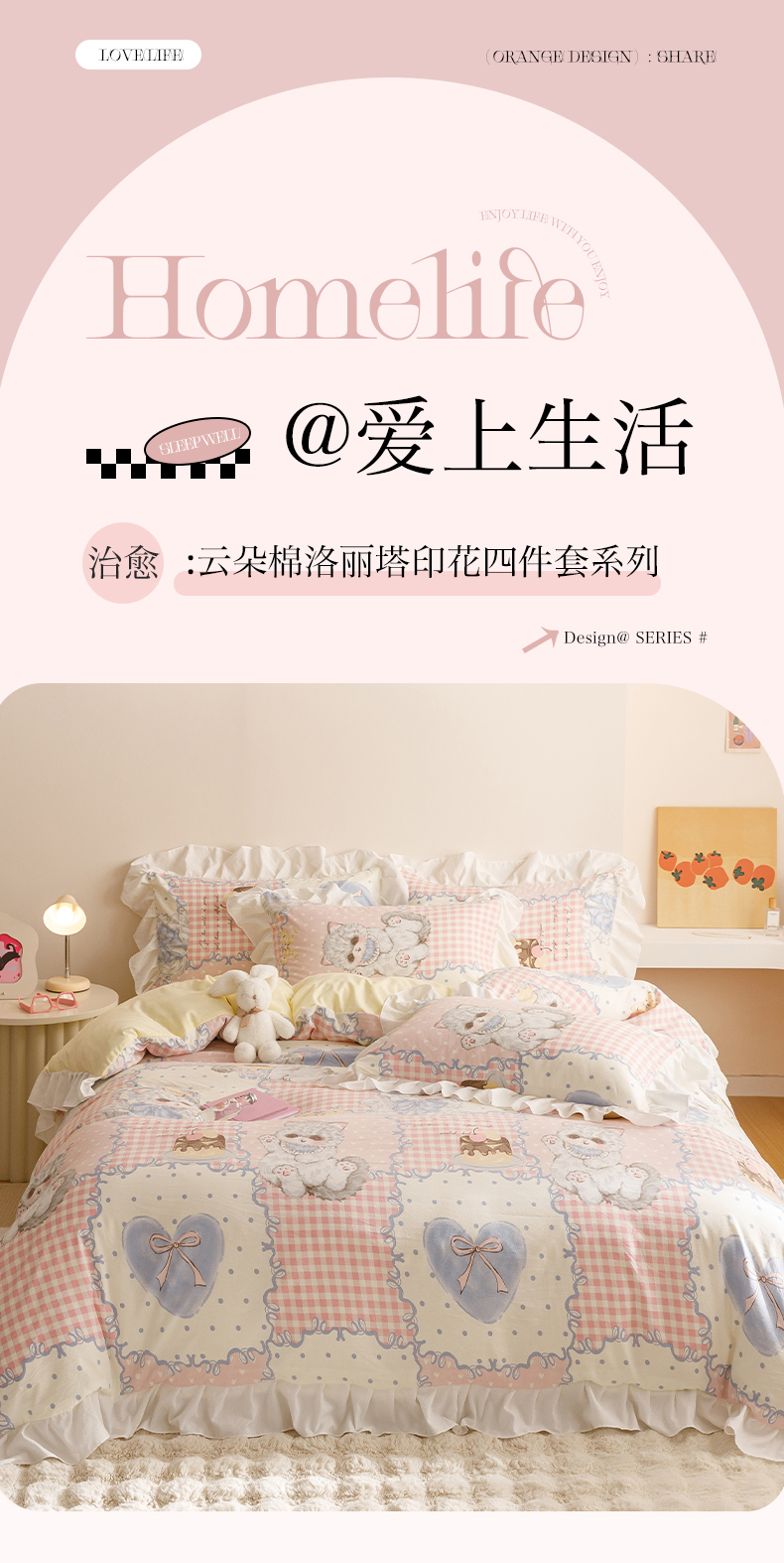 当前位置: 91家纺网 > 商品网购 > 床品套件 > 四件套 > 其它四件套 > 罗亿家纺 2025新款洛丽塔云朵棉花边四件套场景二(提供买家秀) 猫咪蛋糕