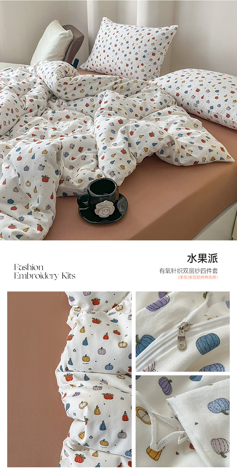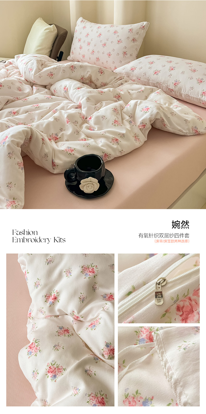 (总)2025新款针织棉双层纱四件套小碎花被套床单床笠款学生三件套新款直播热款-床图-系列一