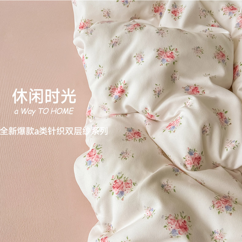 当前位置: 91家纺网 > 商品网购 > 床品套件 > 四件套 > 其它四件套 > 2025新款针织棉双层纱四件套小碎花被套床单床笠款学生三件套新款直播热款-床图-系列一 婉然