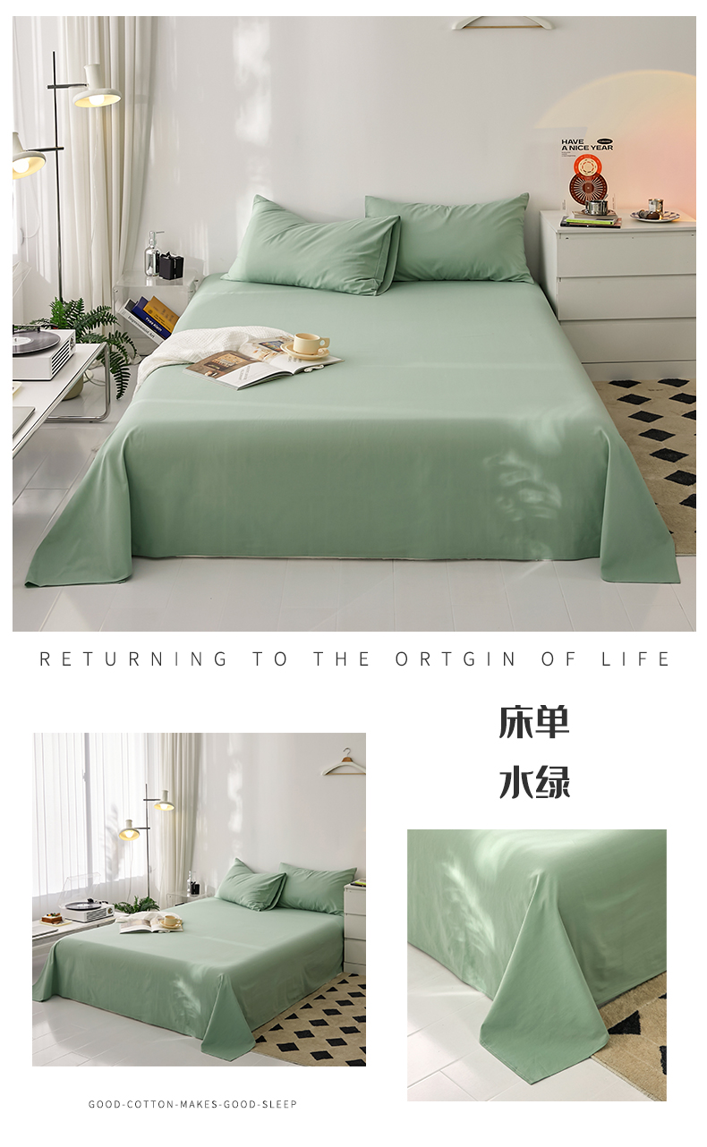 商品名称:雅居纺家纺 2025新款全棉素色水洗棉单床单 水绿
