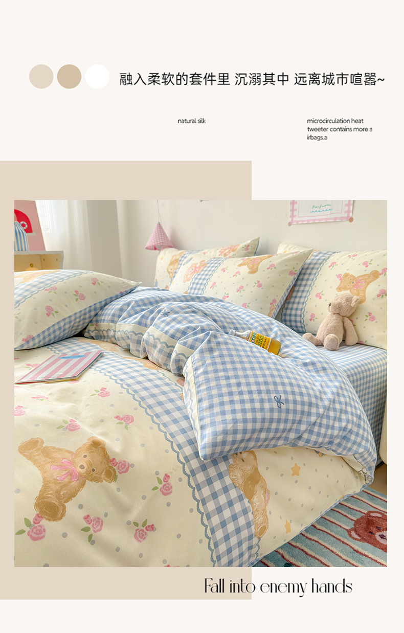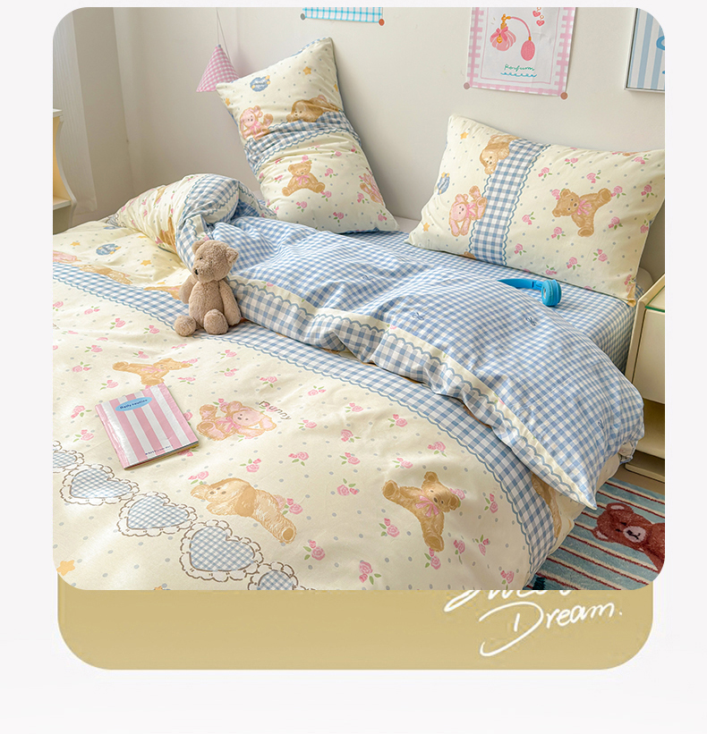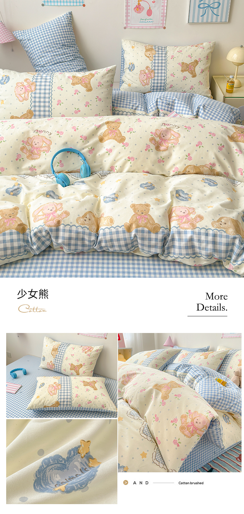商品名称:曼之夏 2025新款全棉印花四件套 少女熊