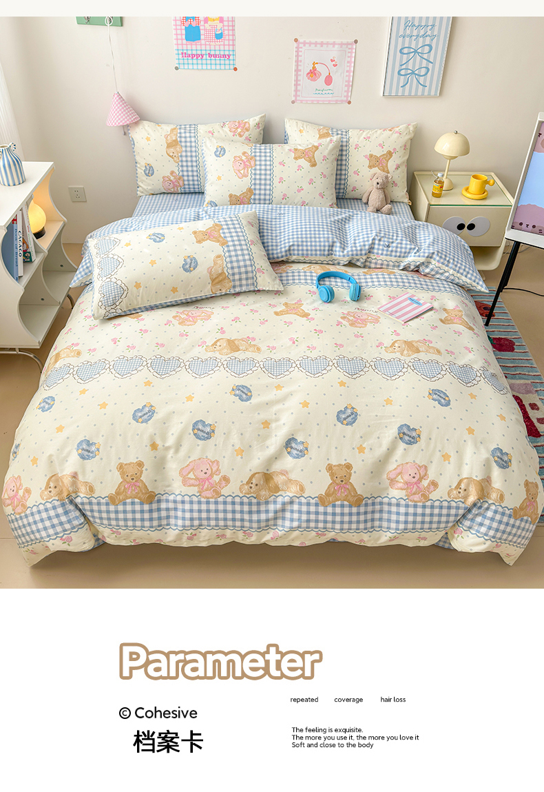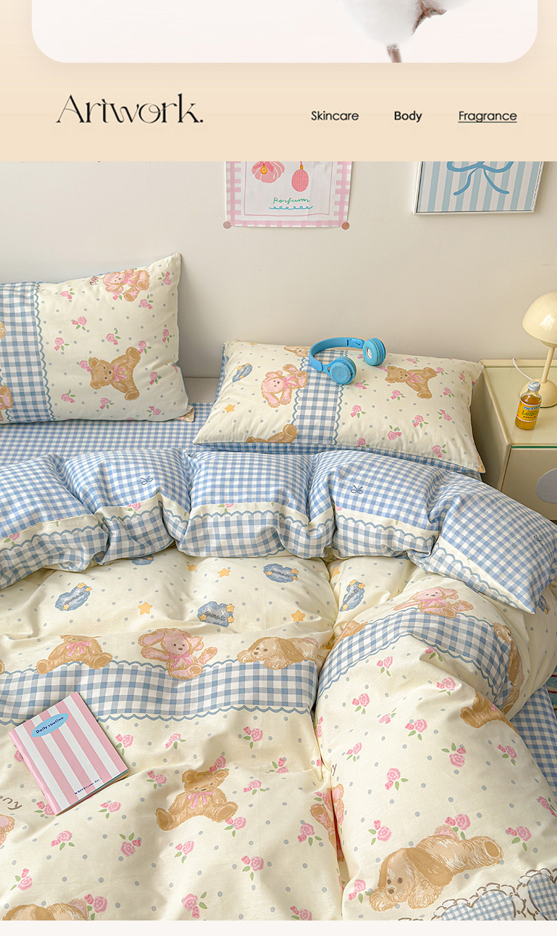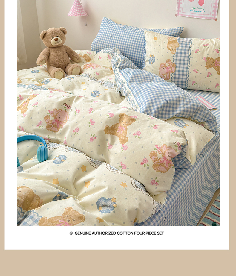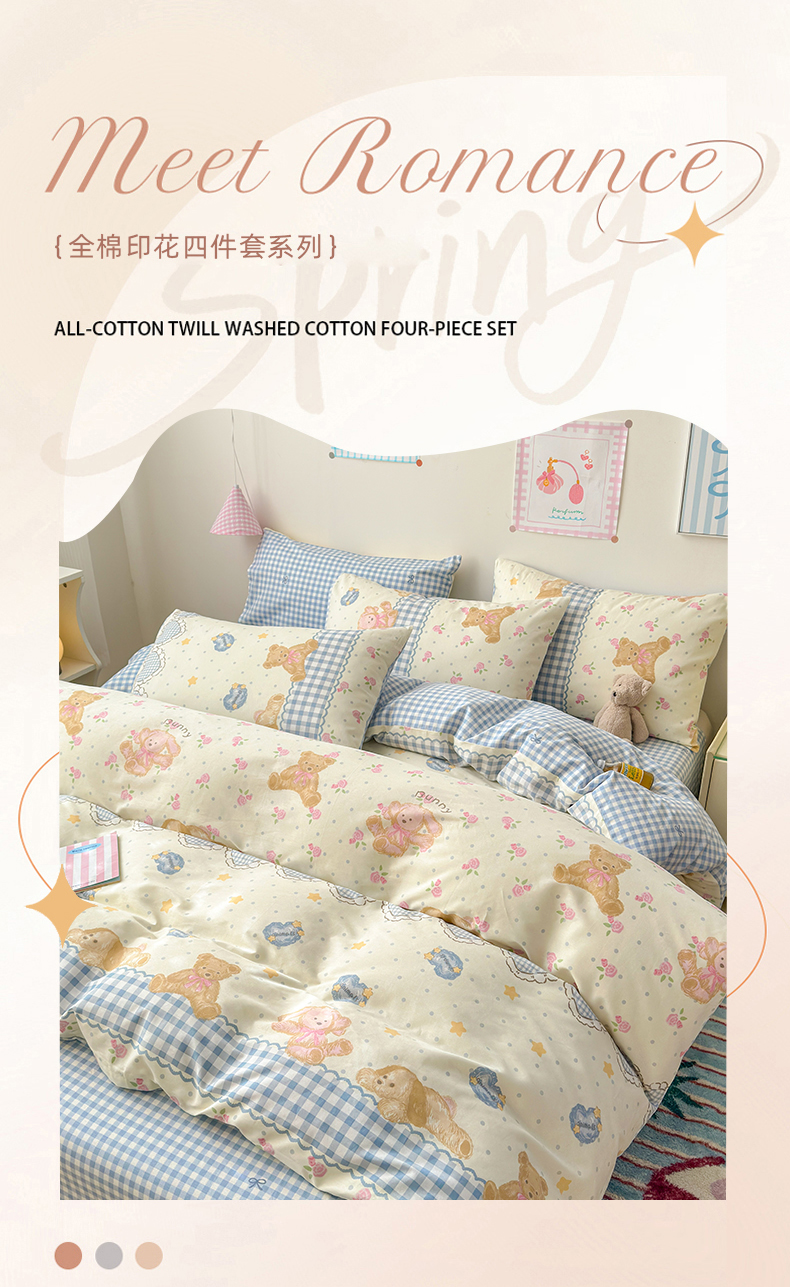 商品名称:曼之夏 2025新款全棉印花四件套 少女熊
