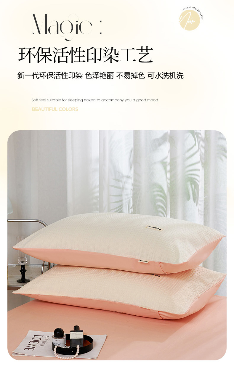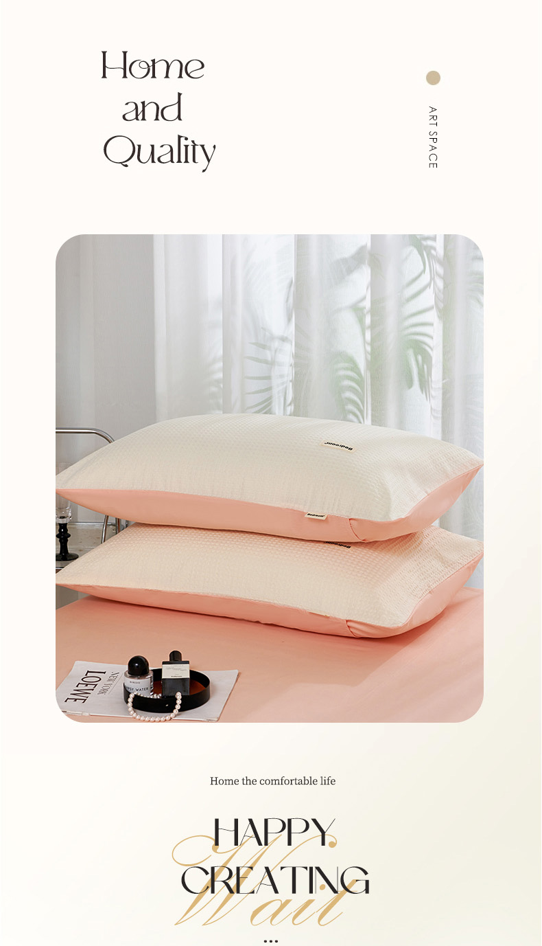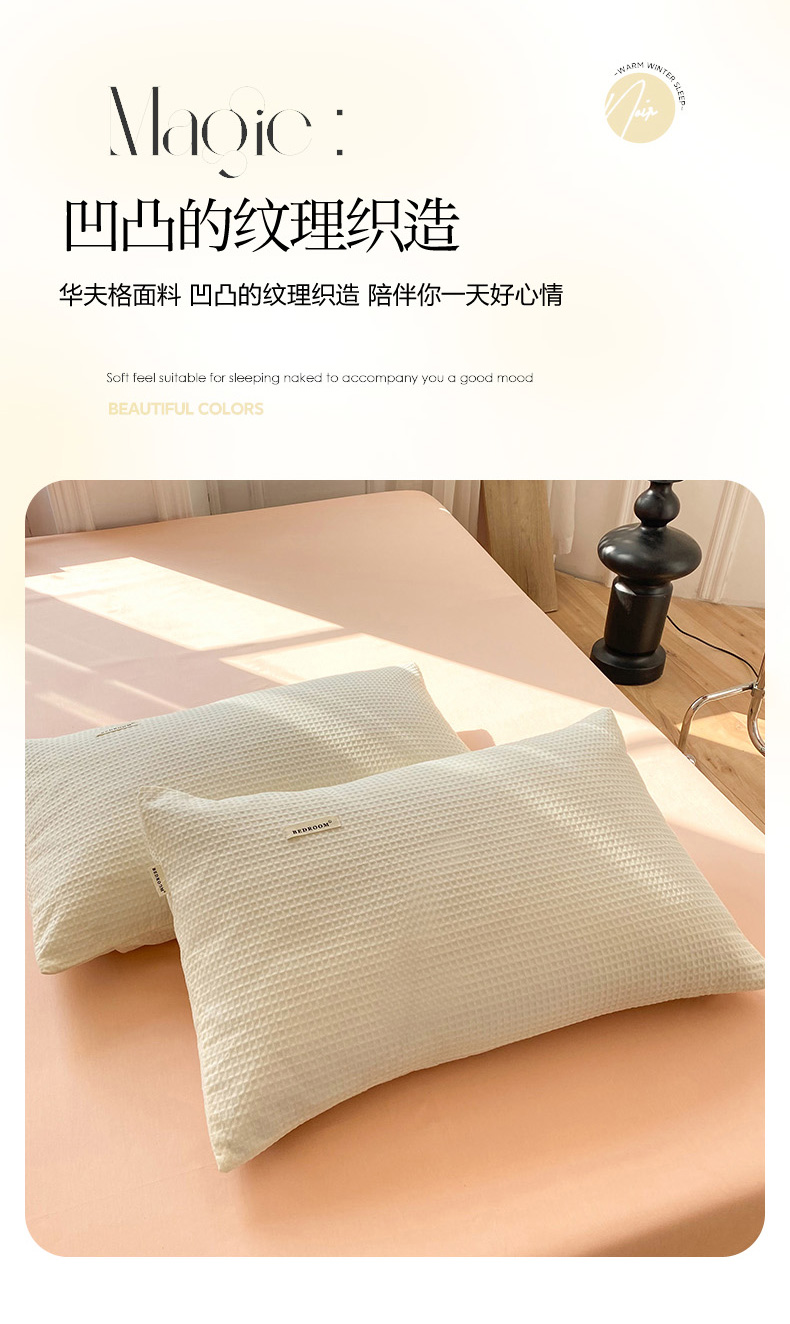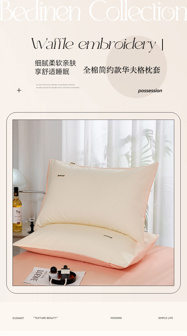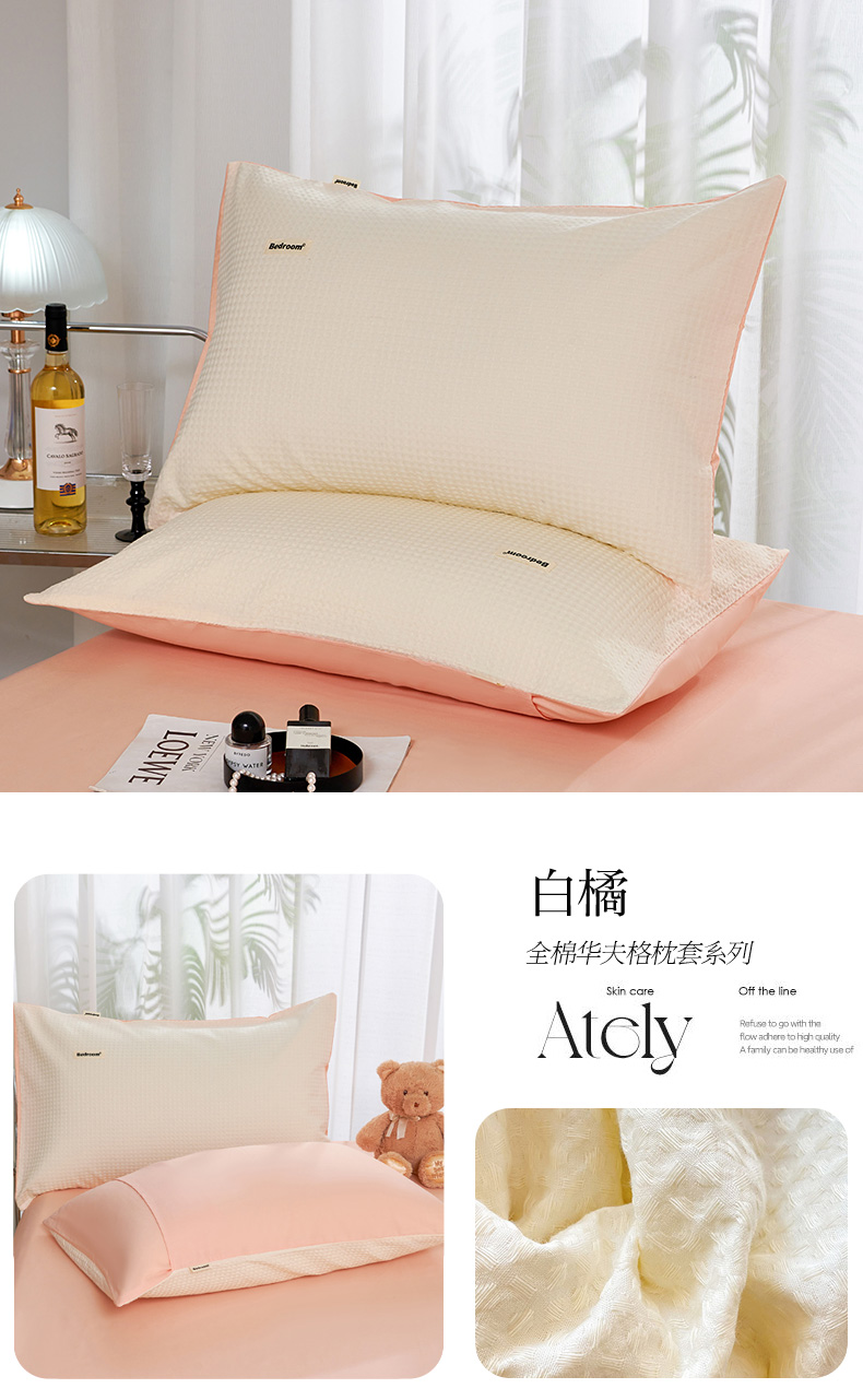 商品名称:眠博士 2025新款简约时尚全棉华夫格枕套 简约款-白橘