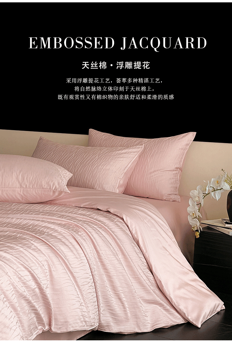 2025新款天丝棉提花系列四件套 浅樱粉