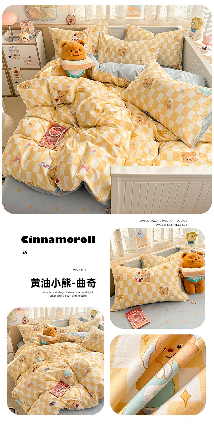 呗旺鹿 2025新款全棉13372黄油小熊系列四件套 黄油小熊-曲奇
