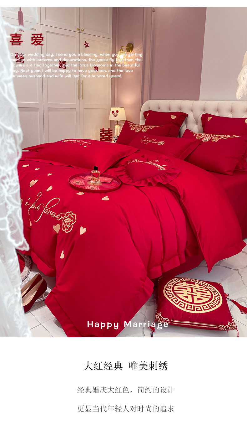 当前位置: 91家纺网 > 商品网购 > 床品套件 > 四件套 > 婚庆四件套 > 东方合美(原:皇家传奇) 2023新款亲肤舒适时尚婚庆四件套系列 喜爱