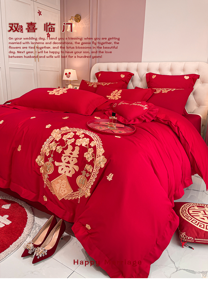 当前位置: 91家纺网 > 商品网购 > 床品套件 > 四件套 > 婚庆四件套 > 东方合美(原:皇家传奇) 2023新款亲肤舒适时尚婚庆四件套系列 双喜临门