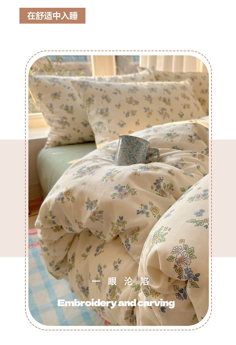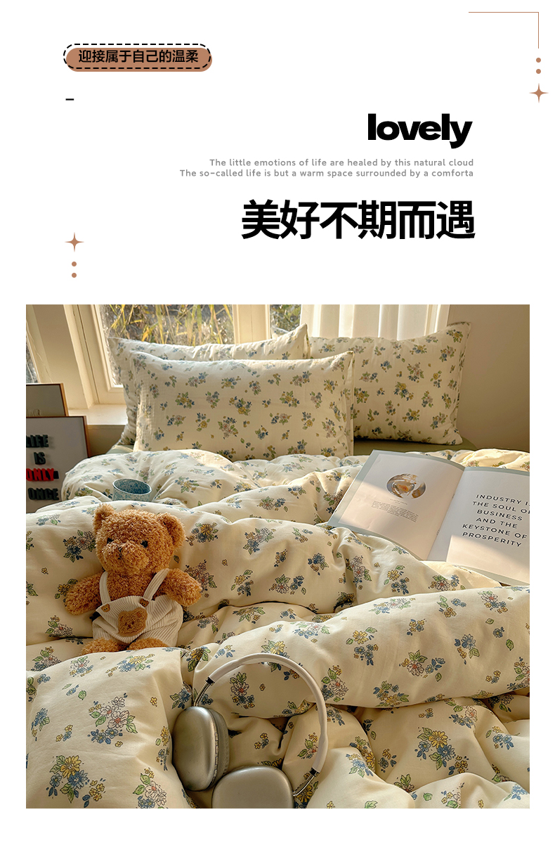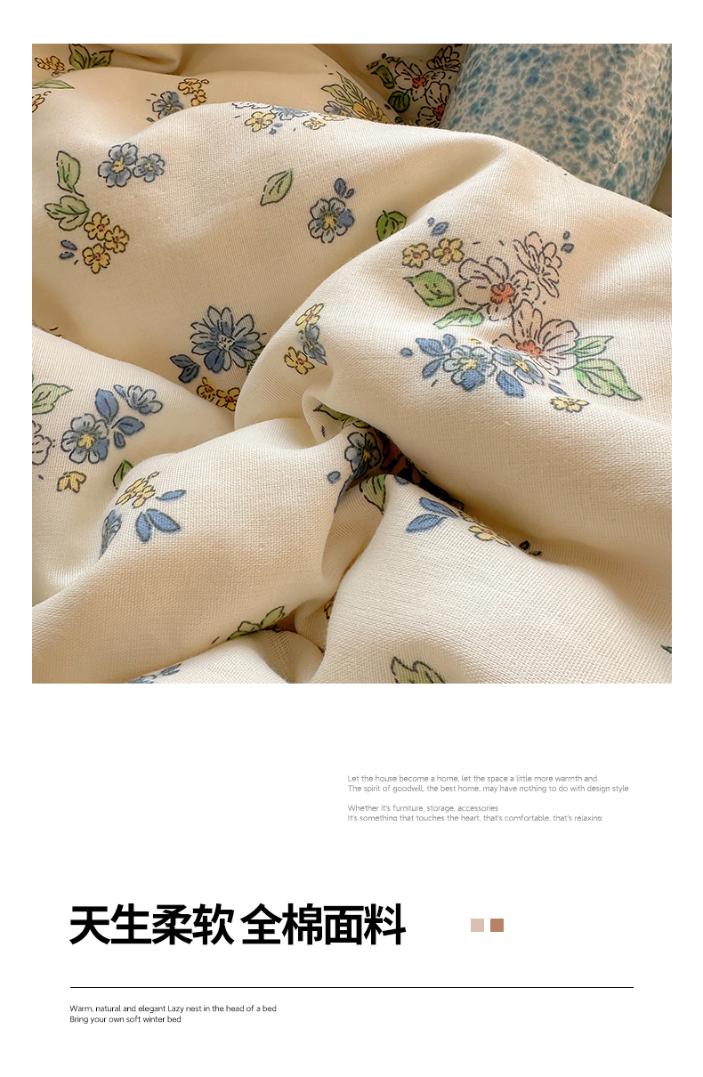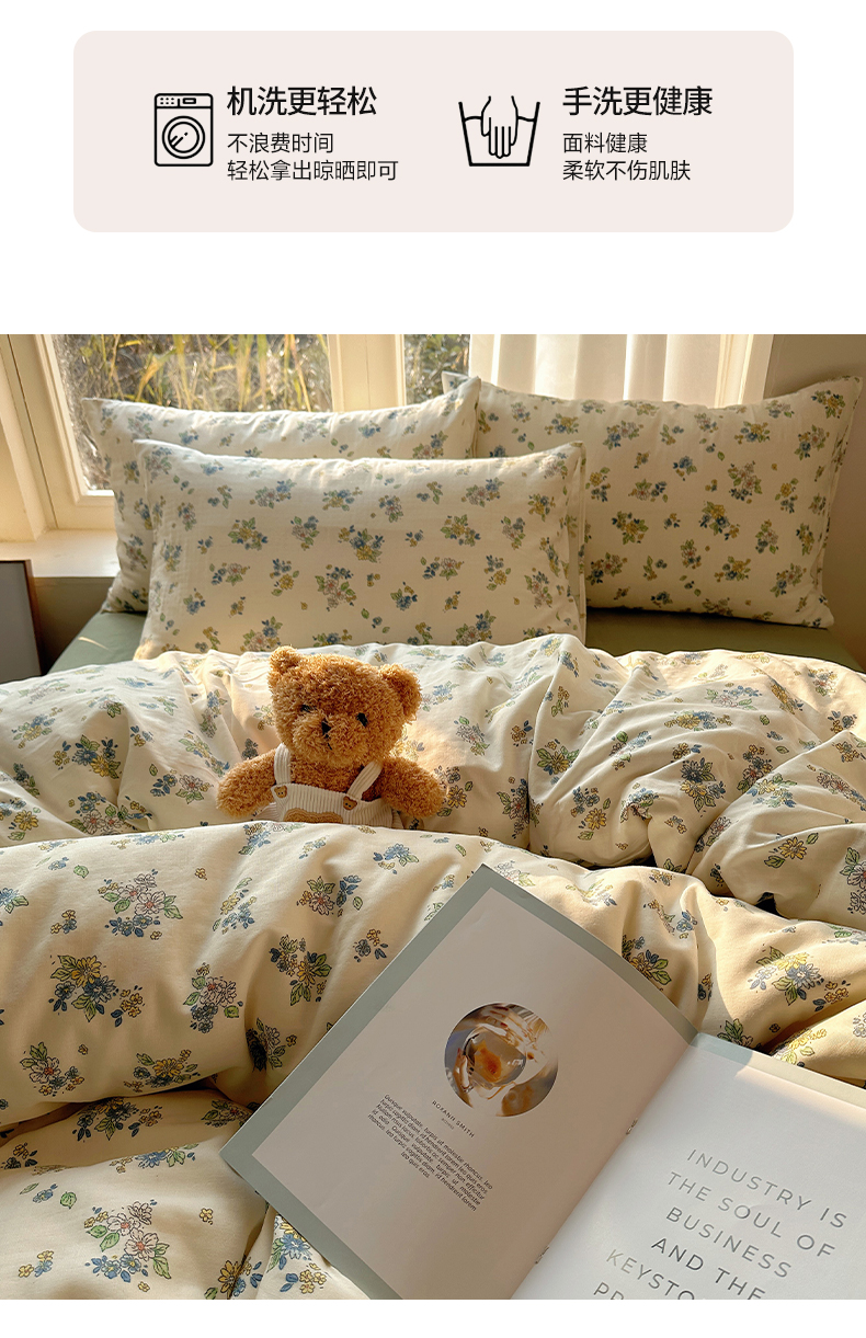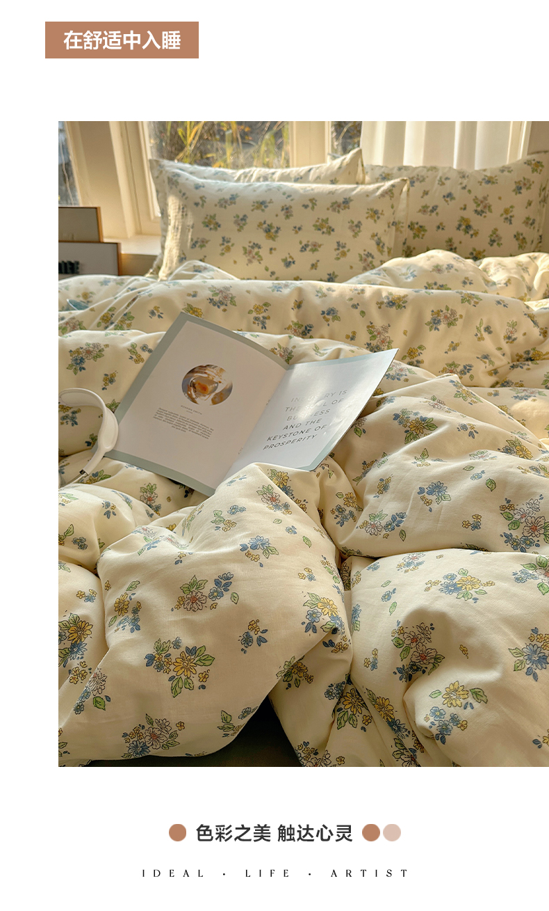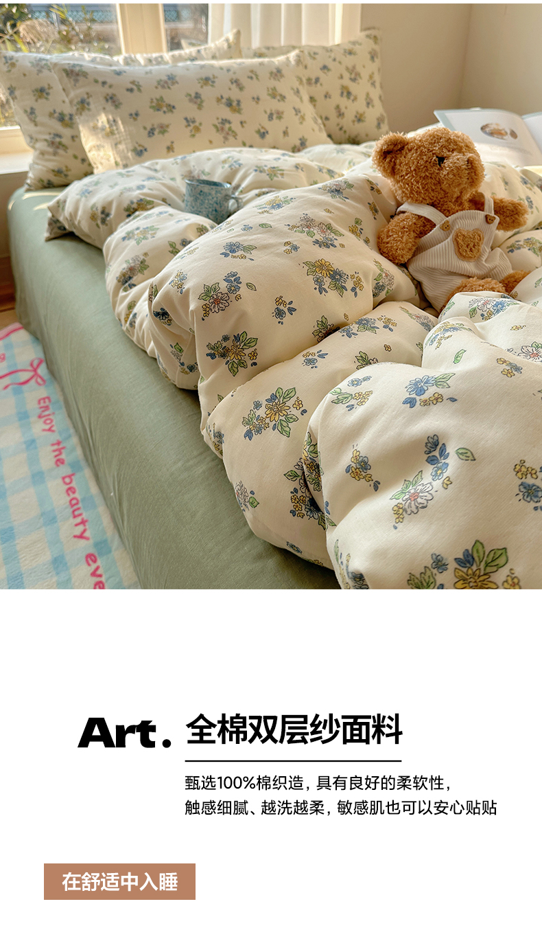 商品名称:雅居纺家纺 2025新款全棉双层纱四件套 初夏