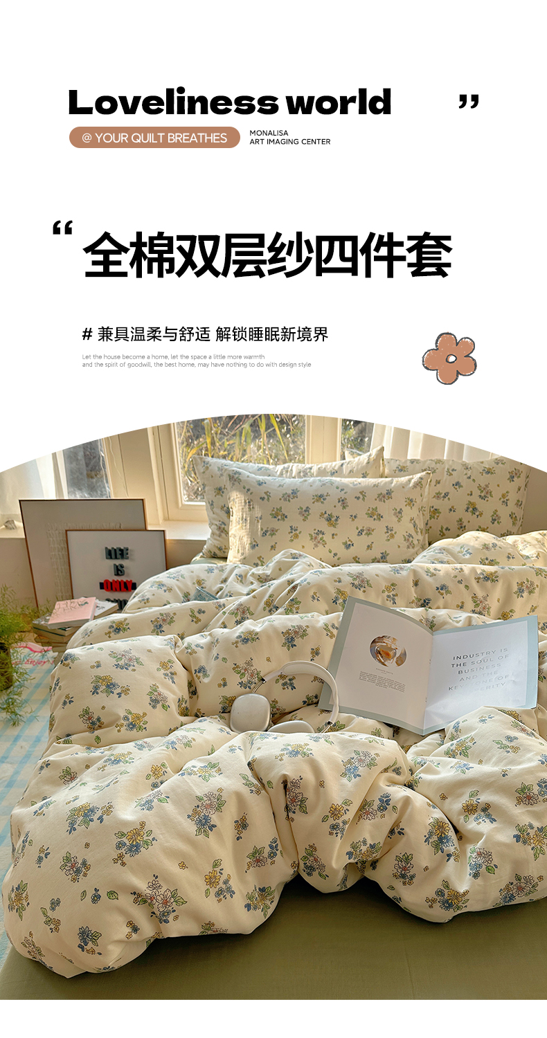 雅居纺家纺 2025新款全棉双层纱四件套 初夏