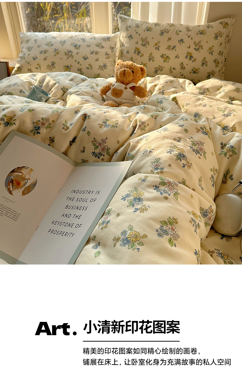 (总)雅居纺家纺 2026新款全棉小清新印花四件套,HI小狗,暴富,草莓蓝花,粉色熊熊,红红火火,简笔画小兔,蓝条花朵兔,绿色小兔,森林乐园,绅士快乐狗,贪睡猫猫,贪玩家族,贪玩小兔兔,祥瑞,小黑猫咪,幸福花朵,幸福兔-蓝,熊熊小汽车,紫色千鸟格