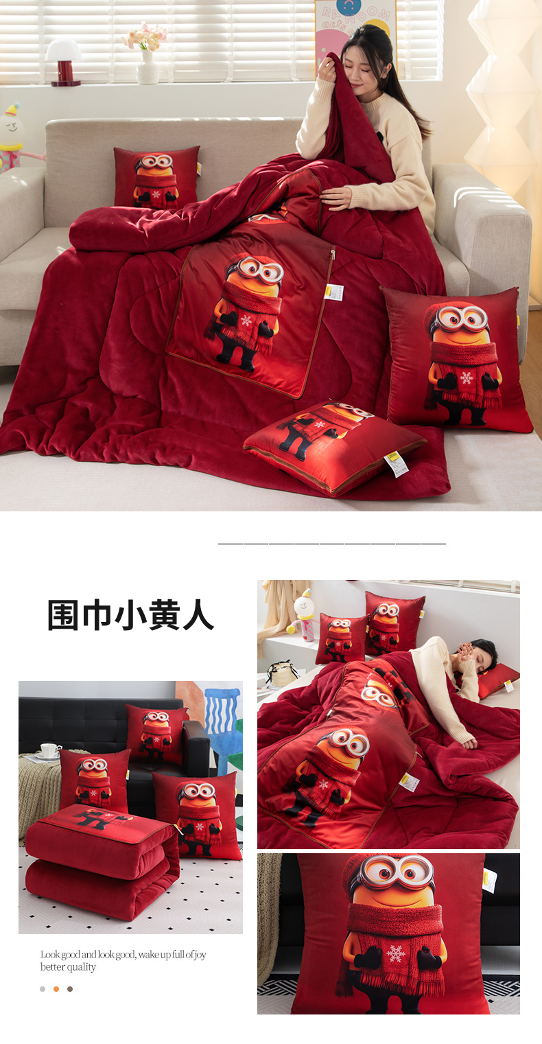 商品名称:宝马家纺(原梦童画) 2025新款小黄人牛奶绒数码印花抱枕被 围巾小黄人