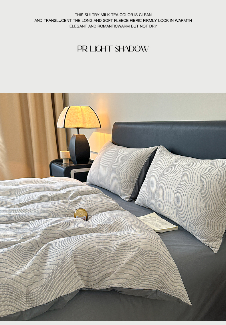 格里芬家纺 2025新款全棉色织水洗三层纱提花纯棉四件套 浮影流光-灰