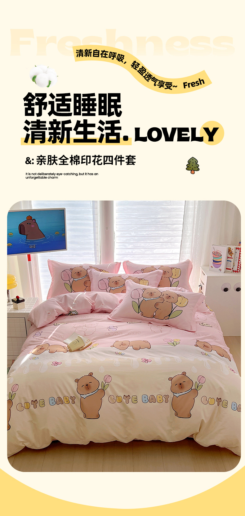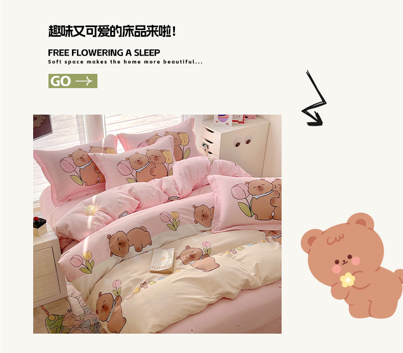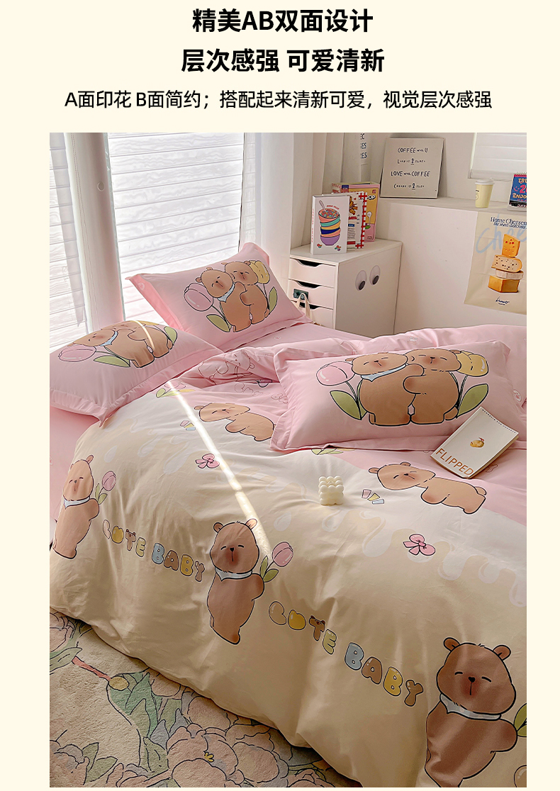 当前位置: 91家纺网 > 商品网购 > 床品套件 > 四件套 > 全棉普通四件套 > 浩诚 2025新款专版卡皮巴拉纯棉全棉卡通大版四件套-原创水豚卡卡【 提供买家秀 】 幸运巴拉