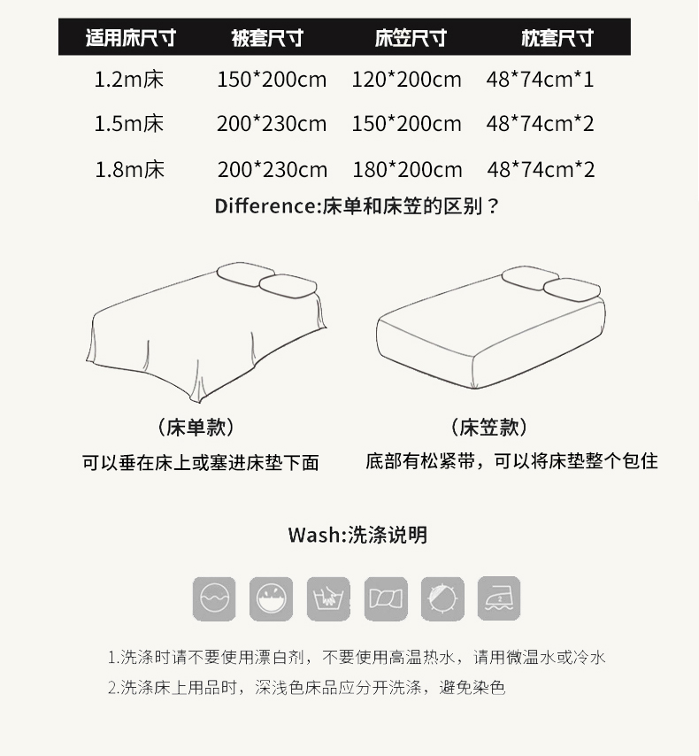 1.2m床笠款三件套 | ¥105.00 |