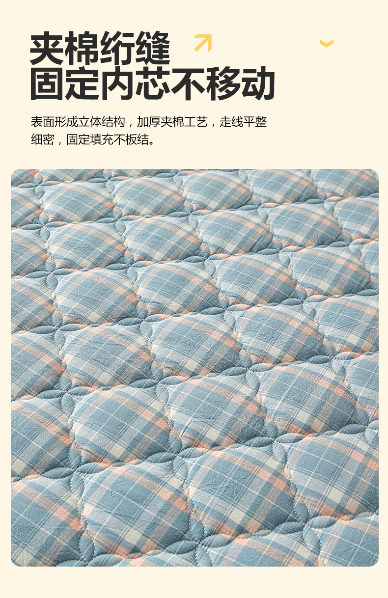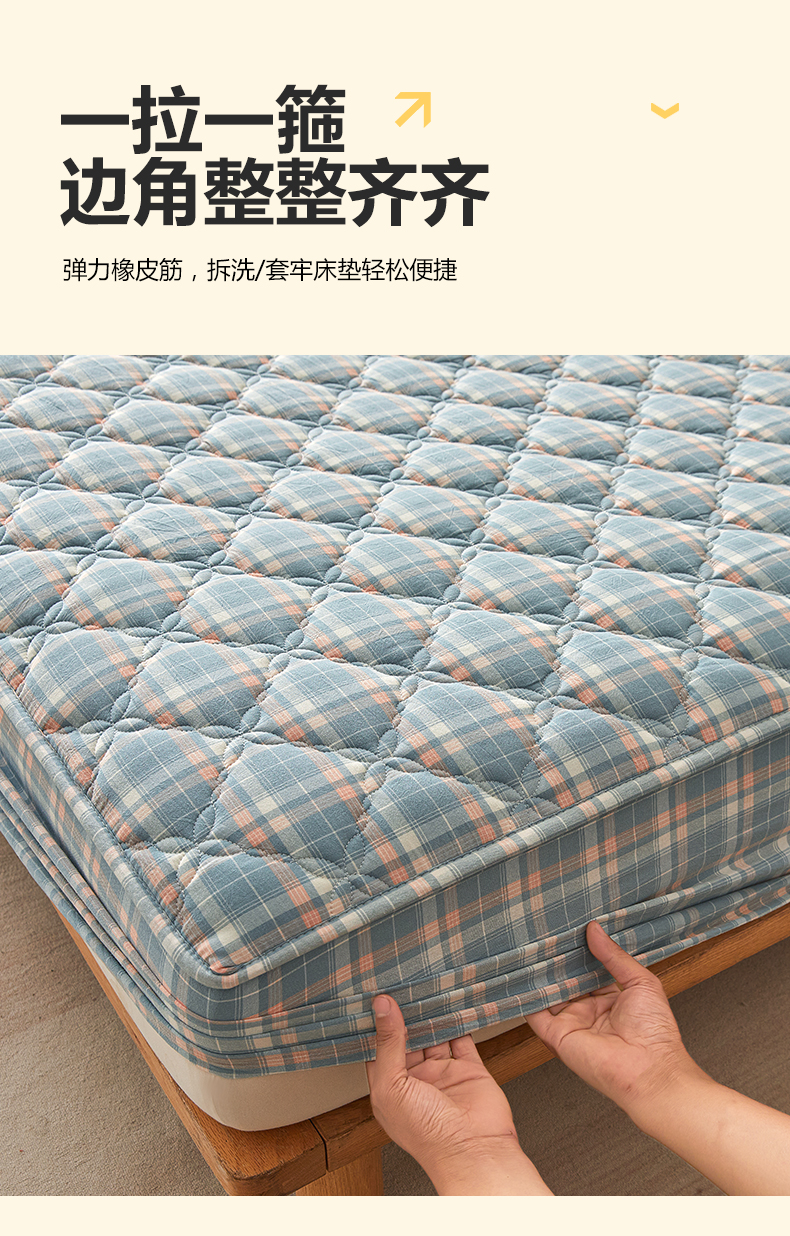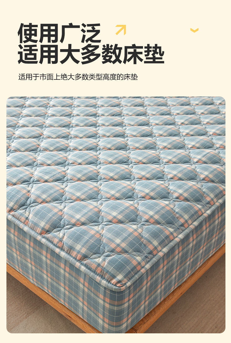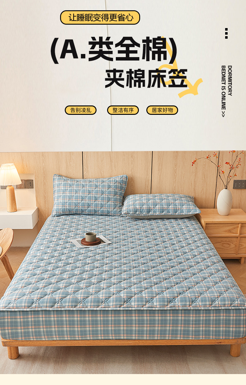 (总)糯米猪家纺 2023新款亲肤棉六面全包夹棉床笠--时尚格,水蓝,深蓝,灰色,白色,米色,粉玉