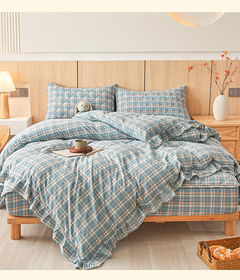 (总)糯米猪家纺 2025新款全棉色织水洗棉床裙,格纹 灰,简兮 兰,兰黄大格,晴空 灰,时尚 灰,雅致 兰