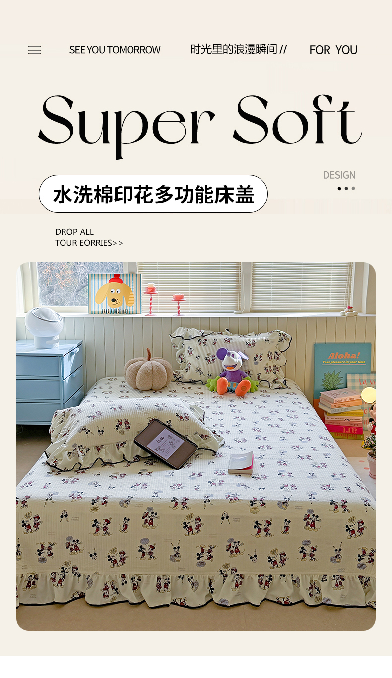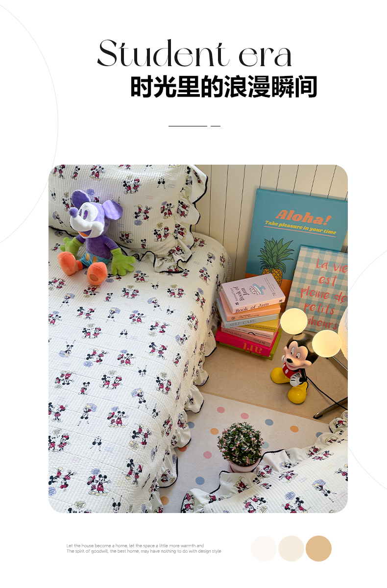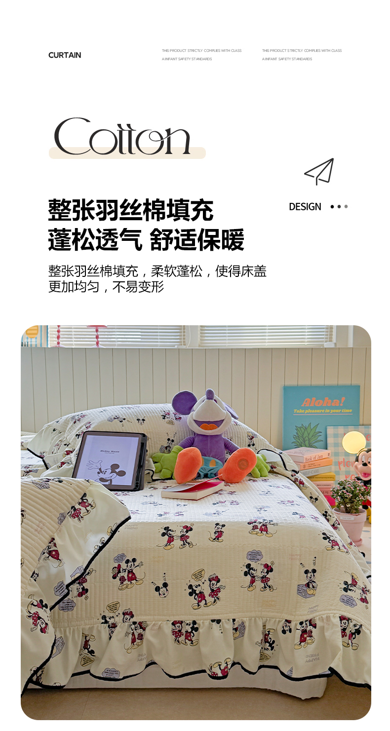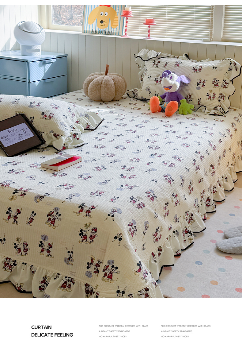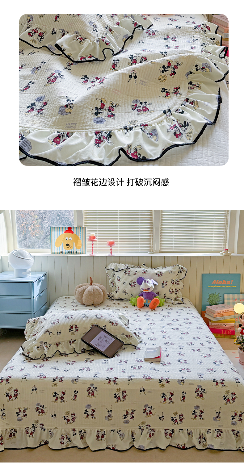 繁花家居 2025新款韩式大花边夹棉床盖系列 可爱鼠宝