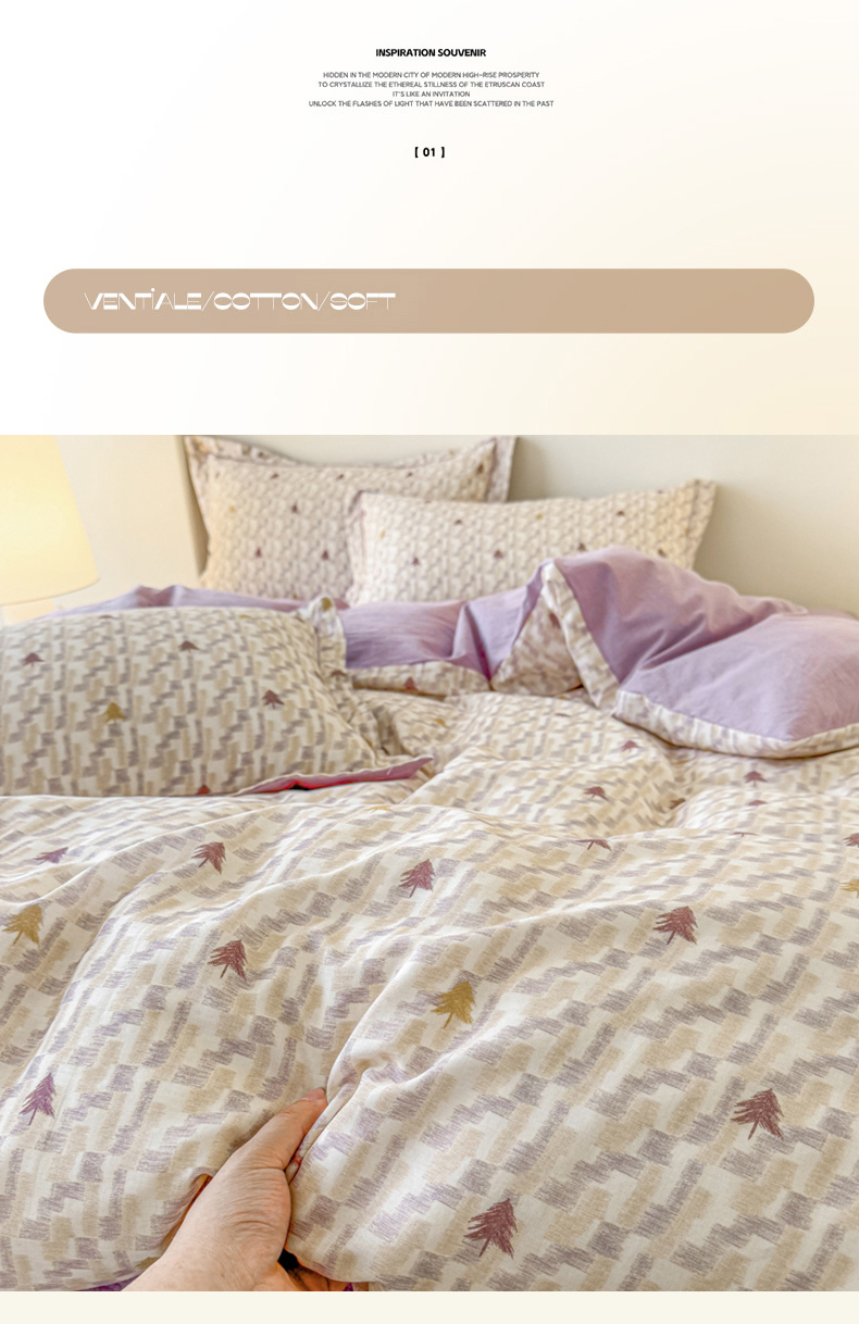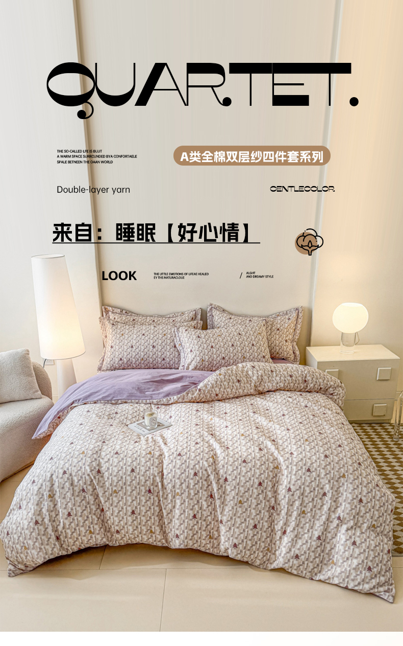 喜四方 2025新款全棉A类母婴级抗菌全棉双层纱四件套 积木-紫