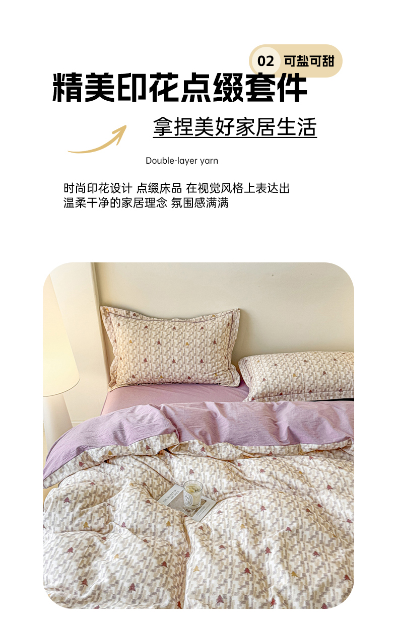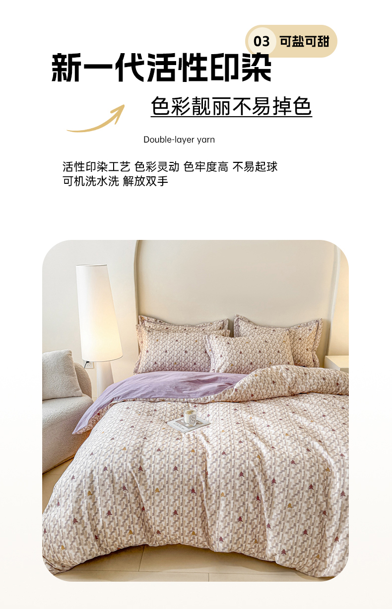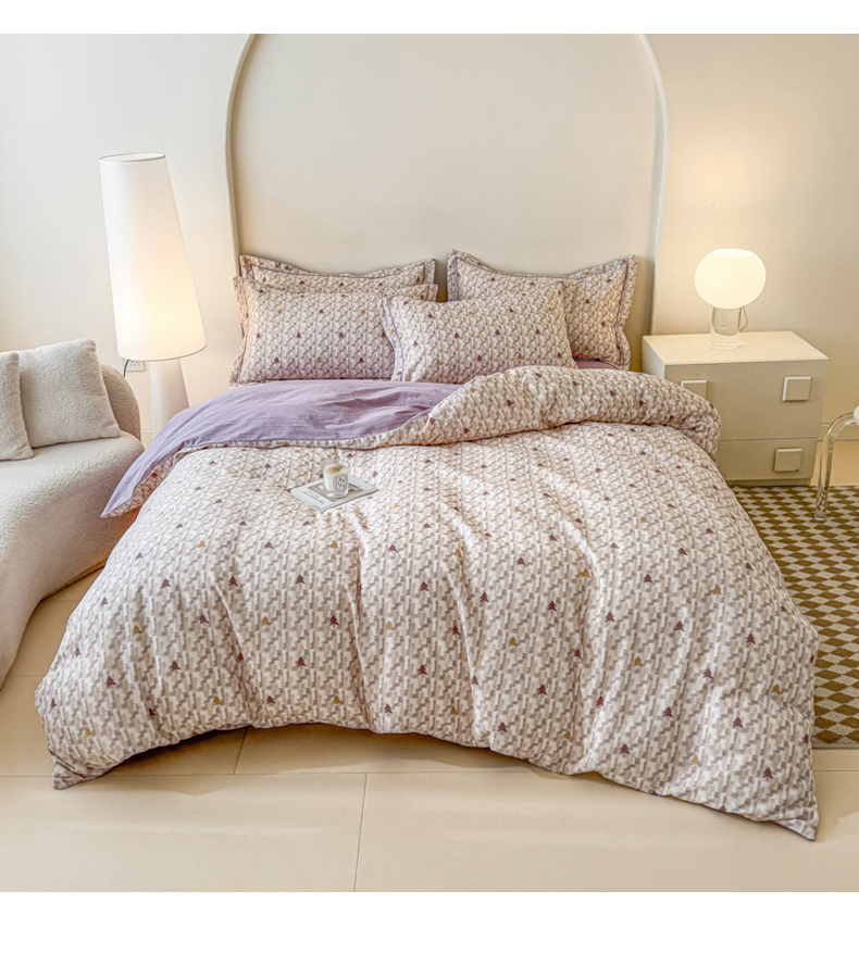 喜四方 2024新款全棉磨毛全棉印花四件套曼迪-紫,曼迪-紫