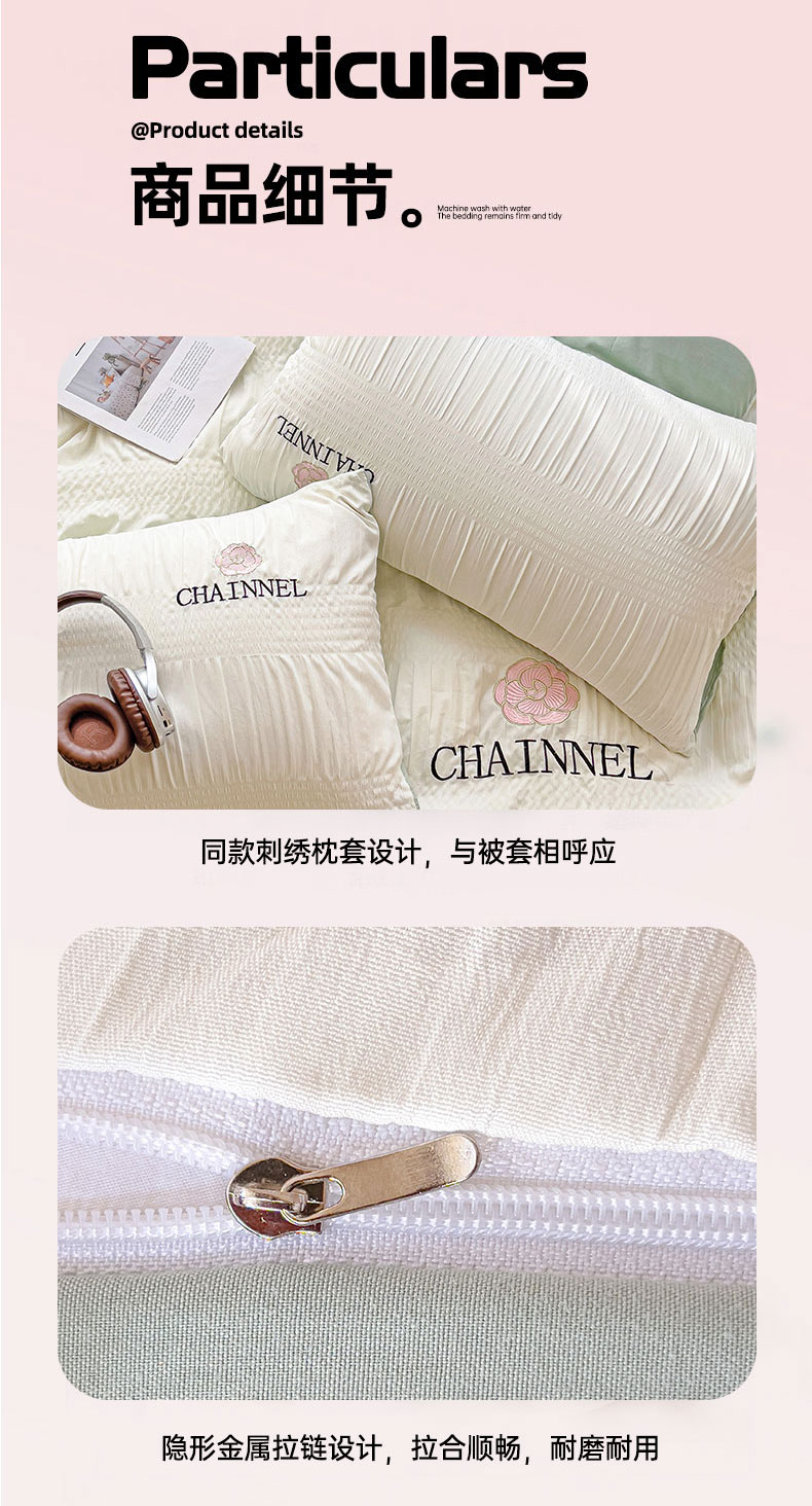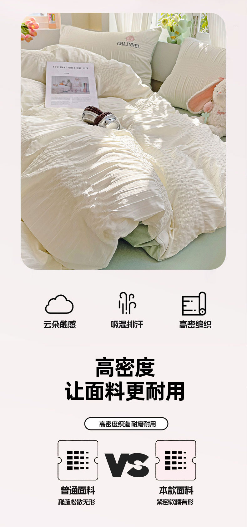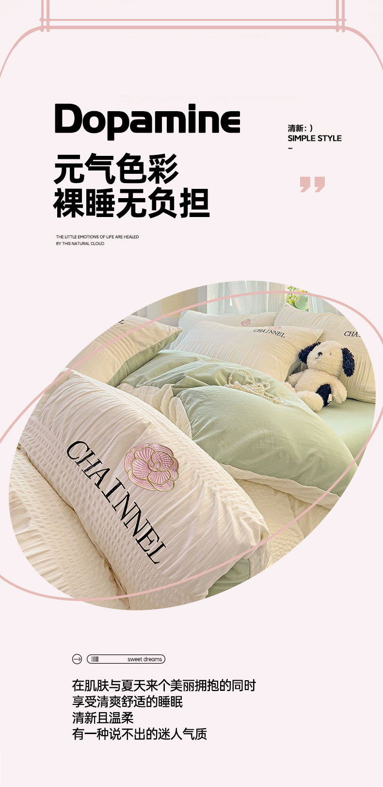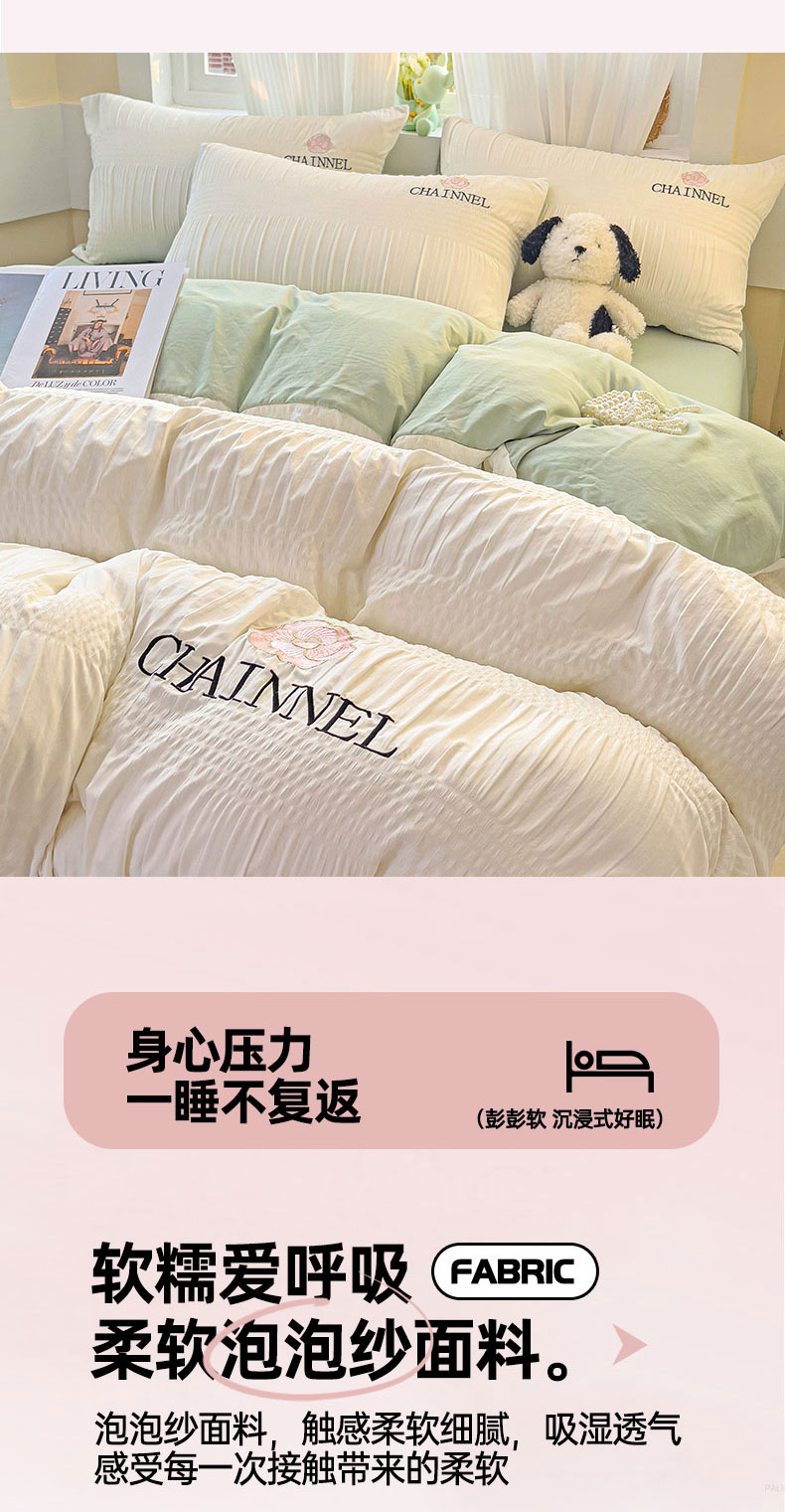 当前位置: 91家纺网 > 商品网购 > 床品套件 > 四件套 > 其它四件套 > 灰鲸 2025新款泡泡纱系列南笙刺绣四件套 泡泡纱南笙-奶昔白+抹茶绿