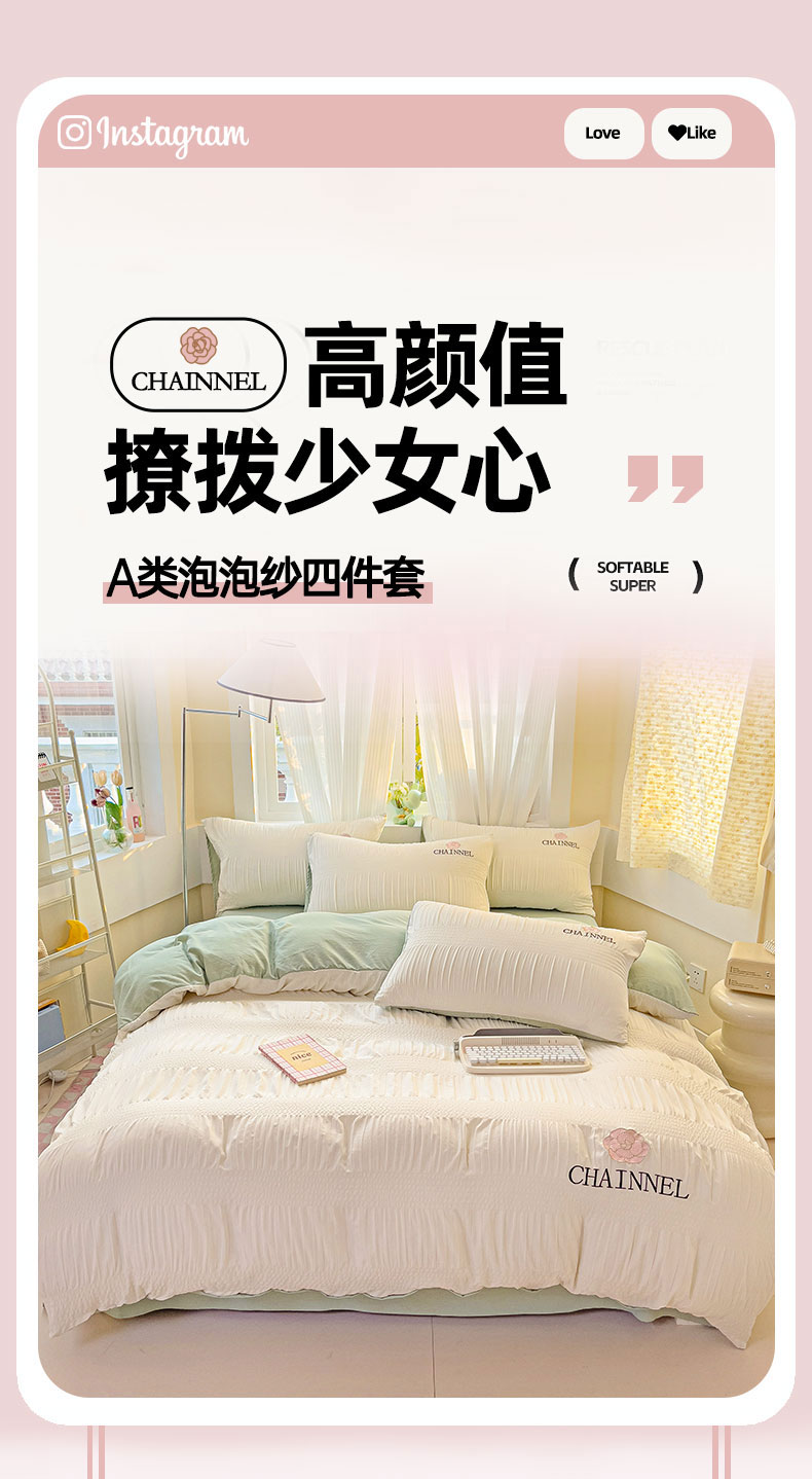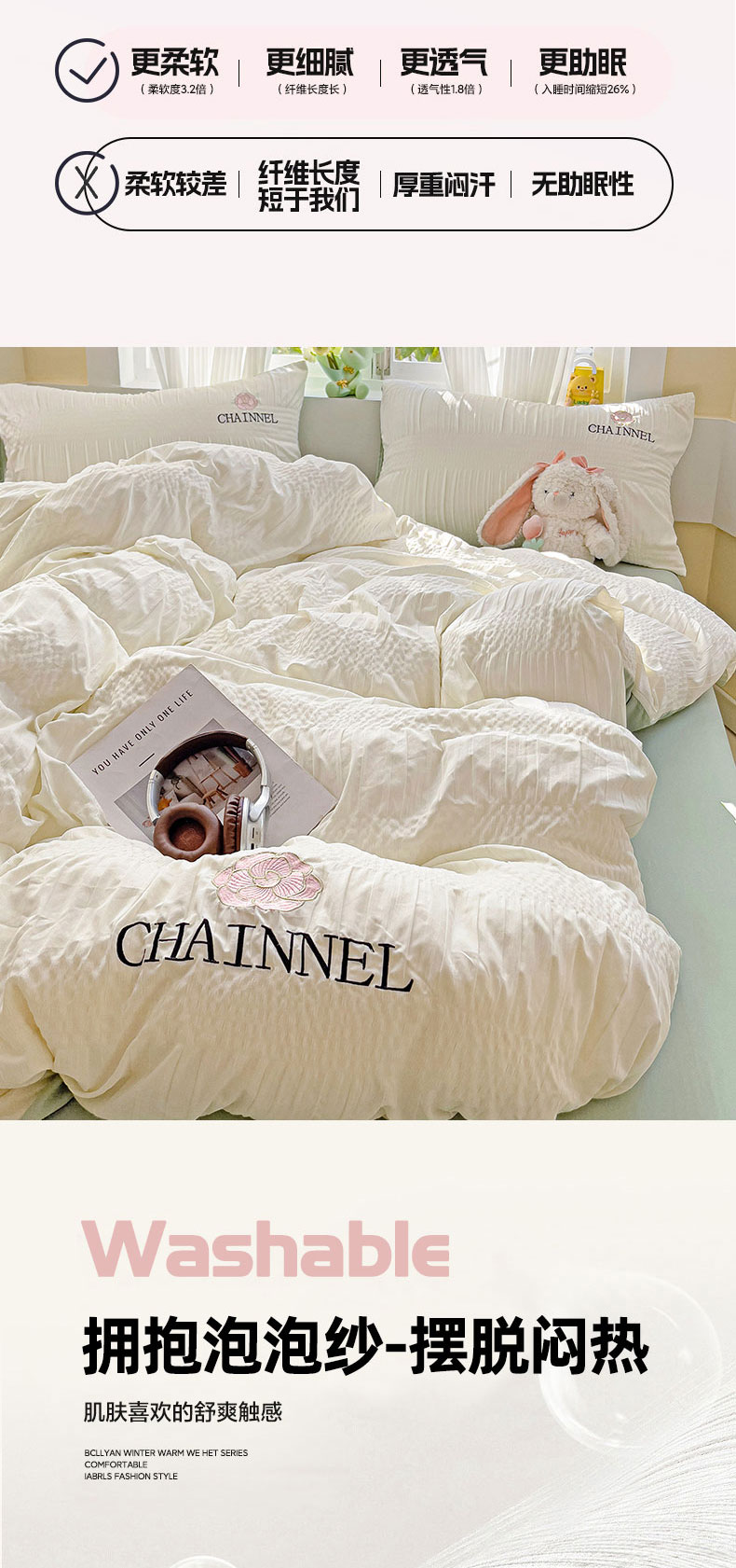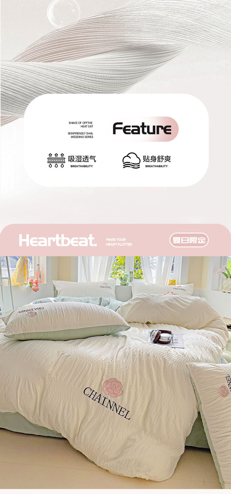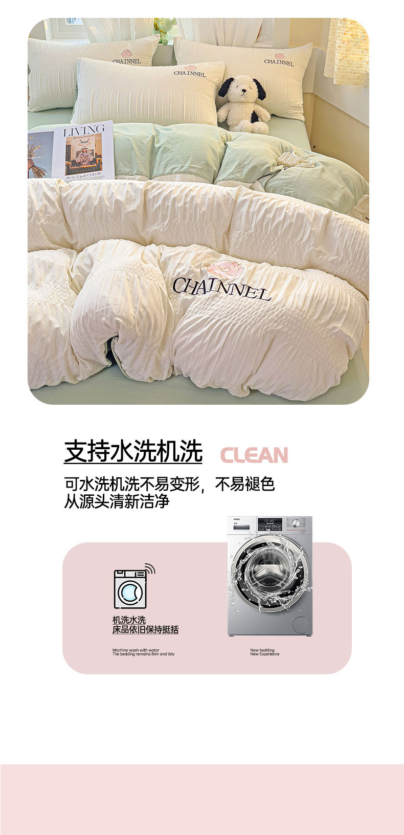 当前位置: 91家纺网 > 商品网购 > 床品套件 > 四件套 > 其它四件套 > 灰鲸 2025新款泡泡纱系列南笙刺绣四件套 泡泡纱南笙-奶昔白+抹茶绿