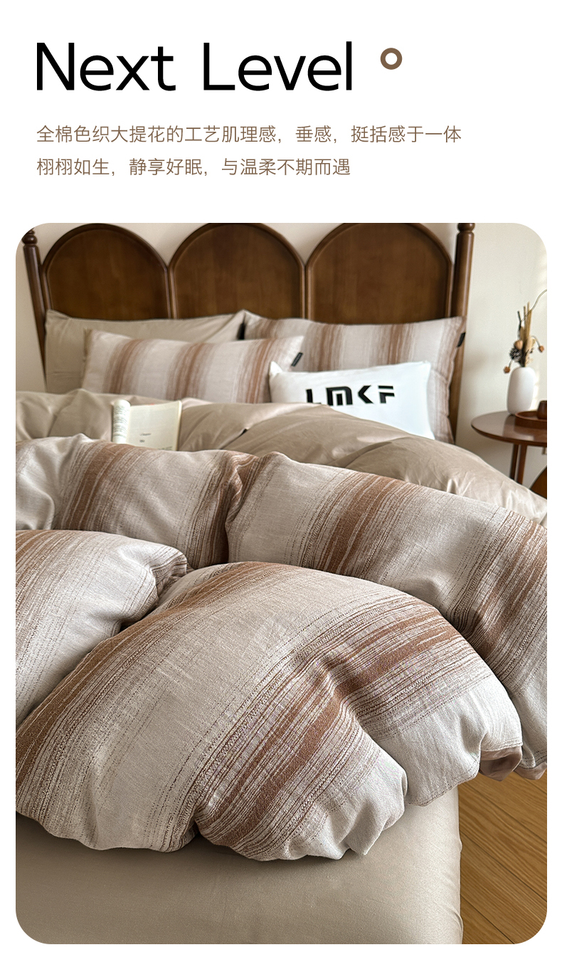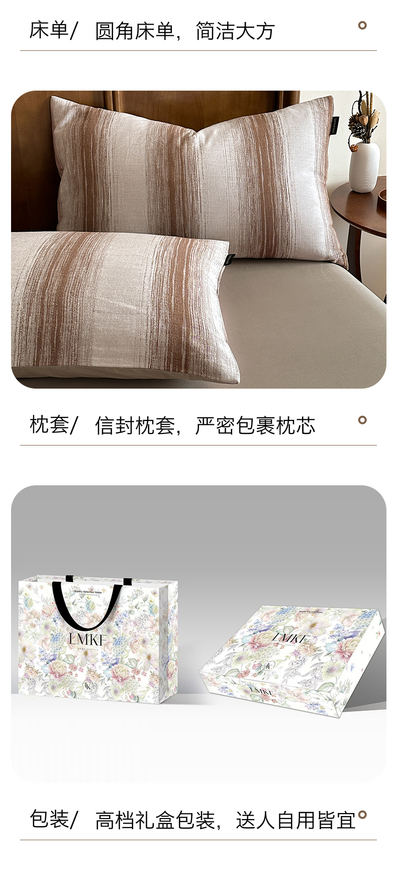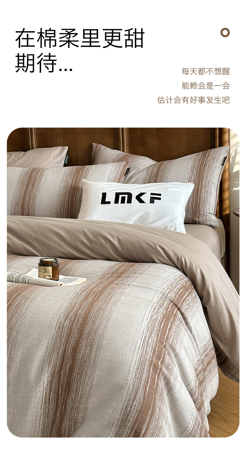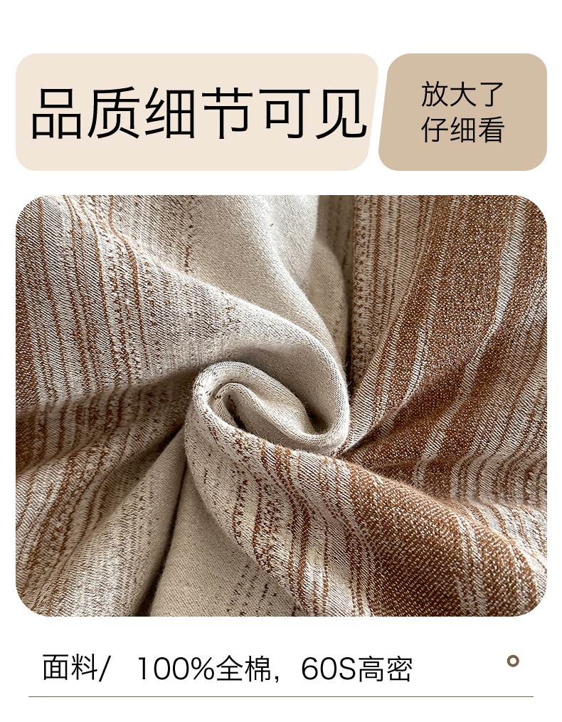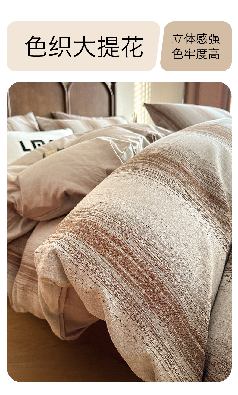蓝米卡夫 2025新品-60S全棉色织大提花四件套(礼盒包装) 条纹主义-咖