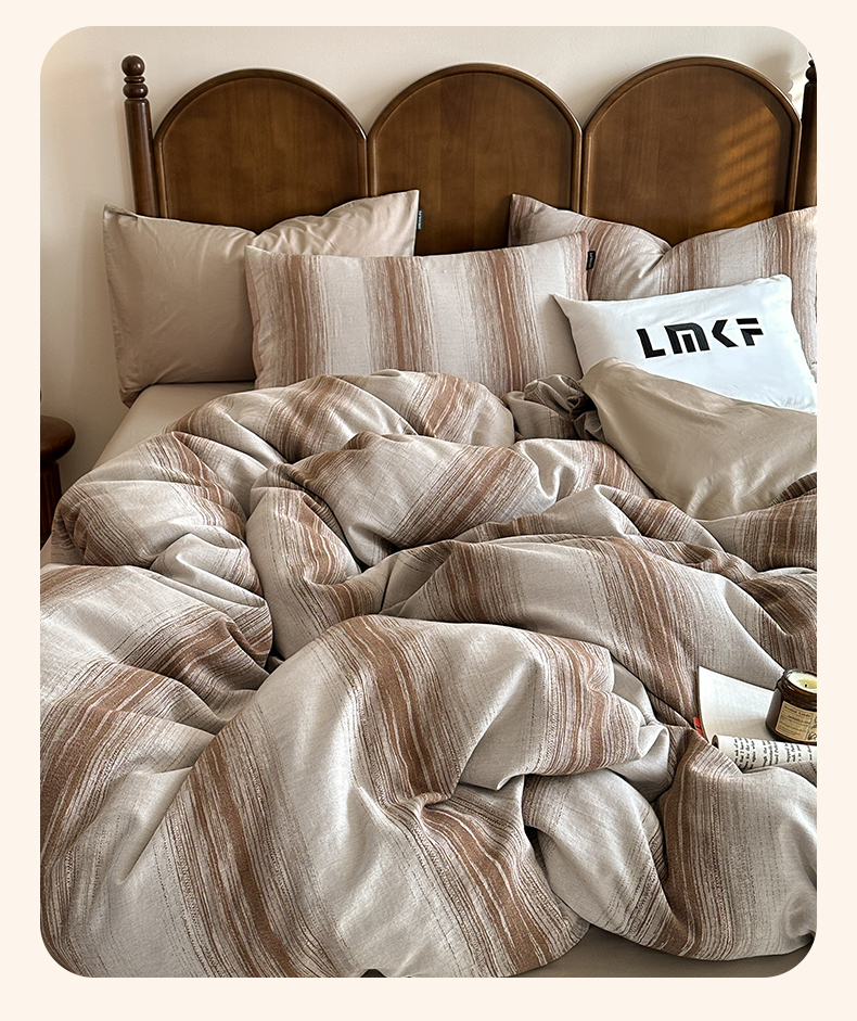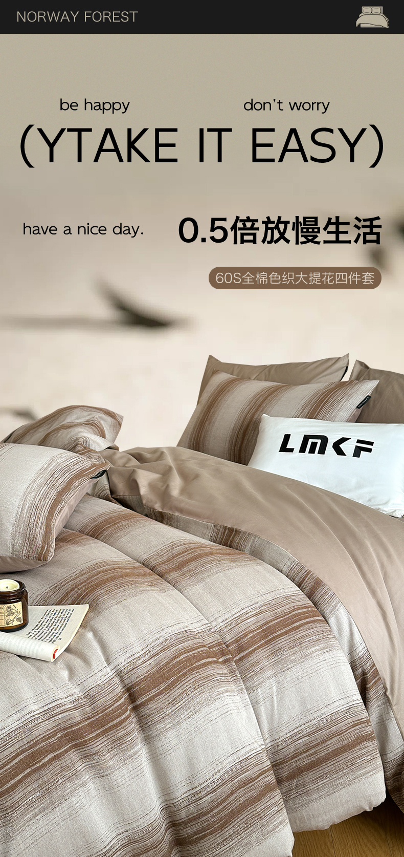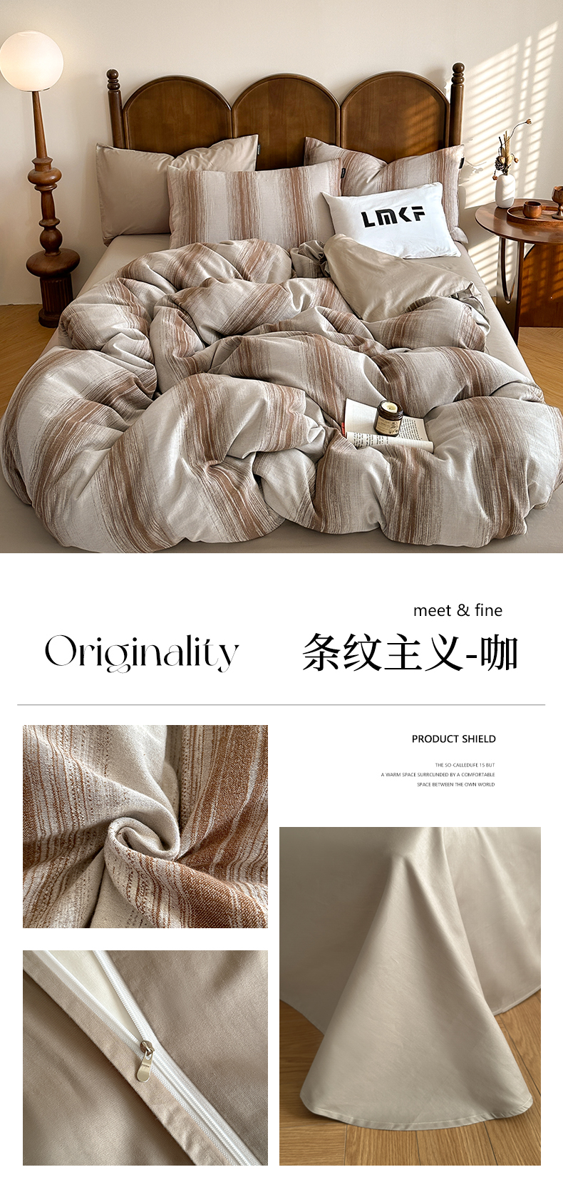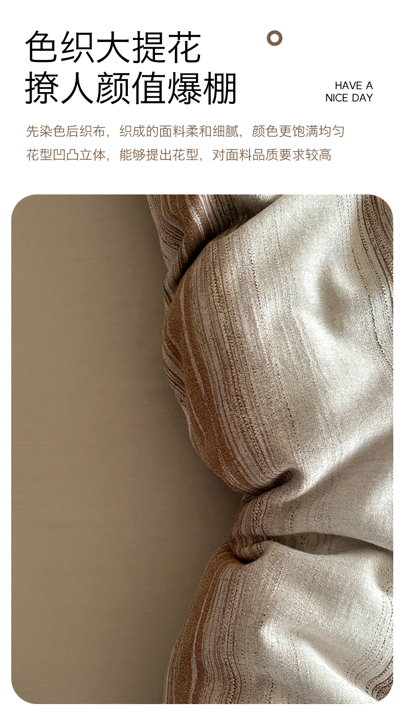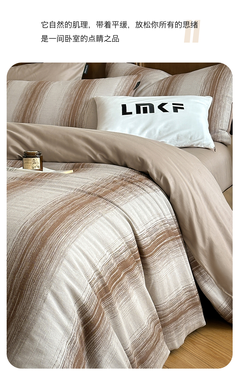 蓝米卡夫 2025新品-60S全棉色织大提花四件套(礼盒包装) 条纹主义-咖