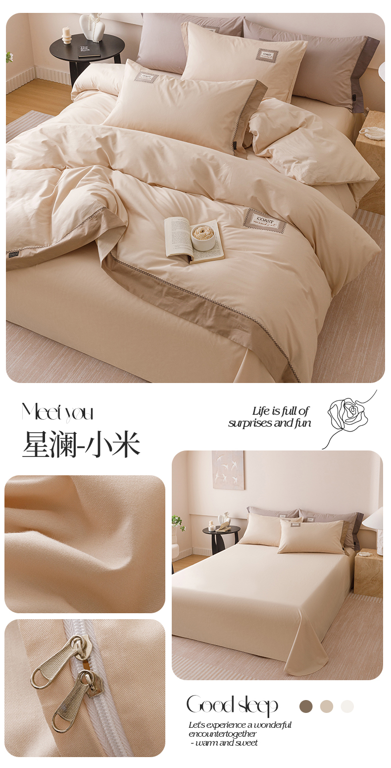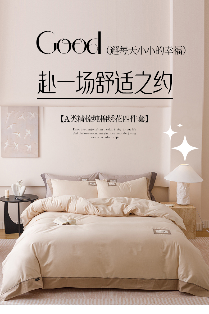 (总)艾莱家纺 2025新款A类精梳贴布纯棉刺绣花四件套-星澜,星澜-春绿,星澜-美拉德,星澜-蜜糖粉,星澜-松露咖,星澜-小米,星澜-烟云灰