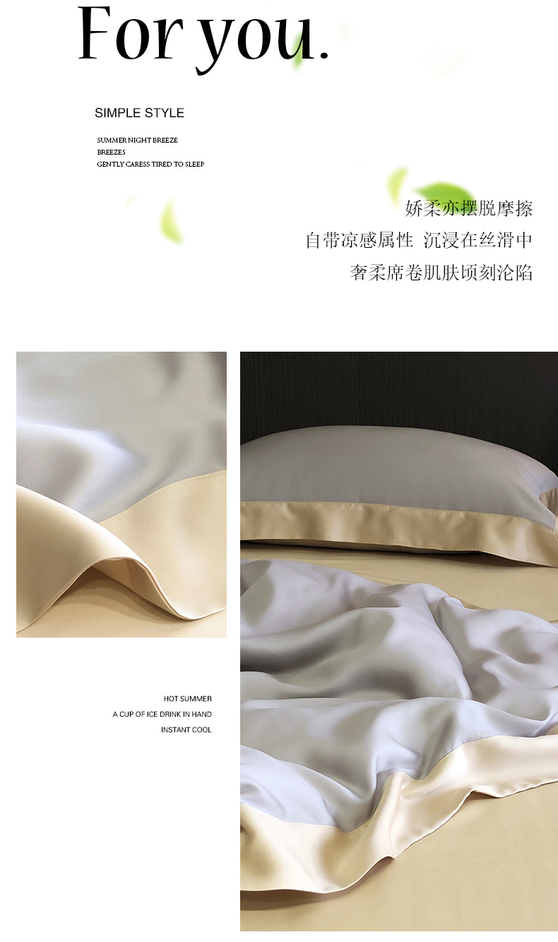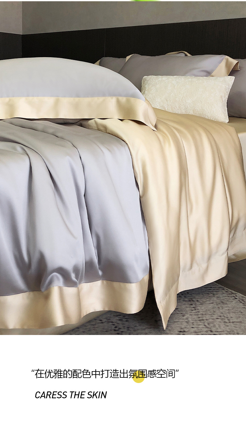云栖家居 2025莱赛尔60兰精天丝双拼纯色四件套 雅灰&香槟