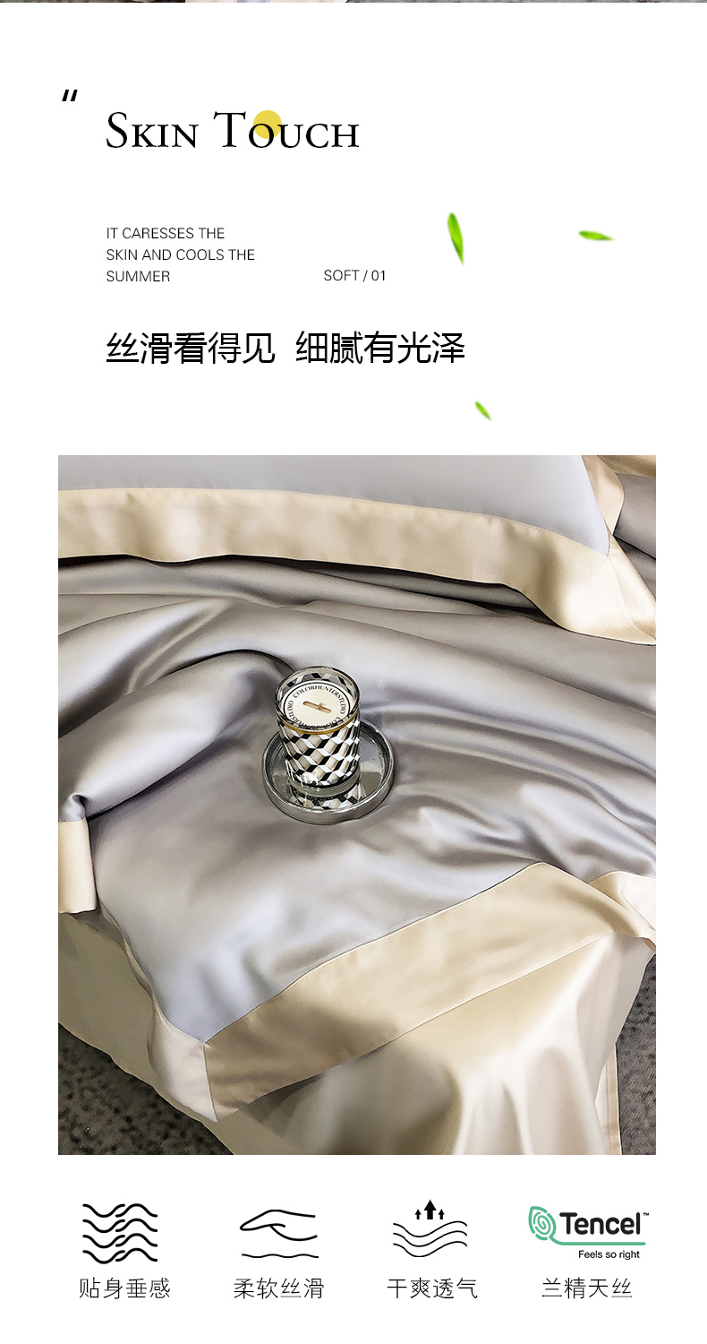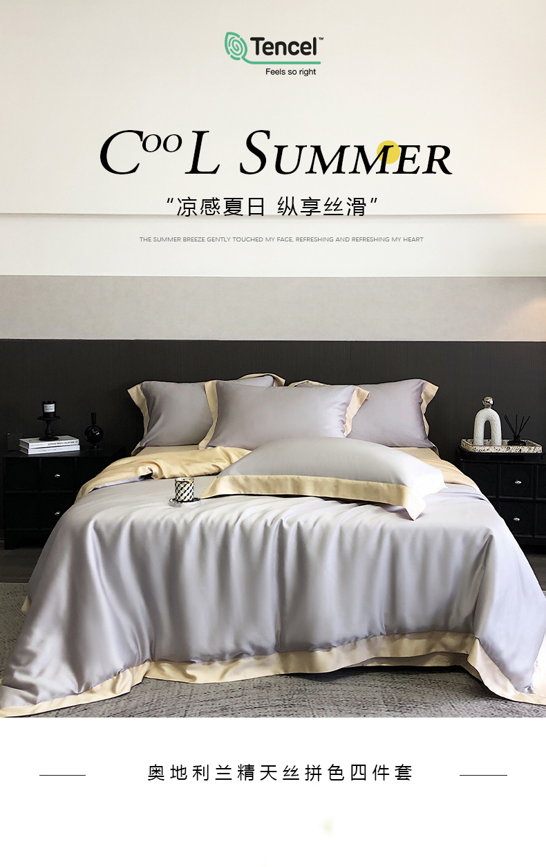 商品名称:云栖家居 2025莱赛尔60兰精天丝双拼纯色四件套 雅灰&香槟