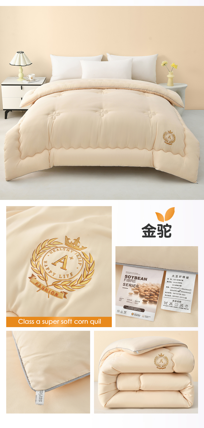 • 91家纺网 家纺一手货源 找家纺 悦织湾2025新款A类母婴级大豆纤维双拼被3-10斤春秋被冬被夏被空调被轻奢时尚 金驼