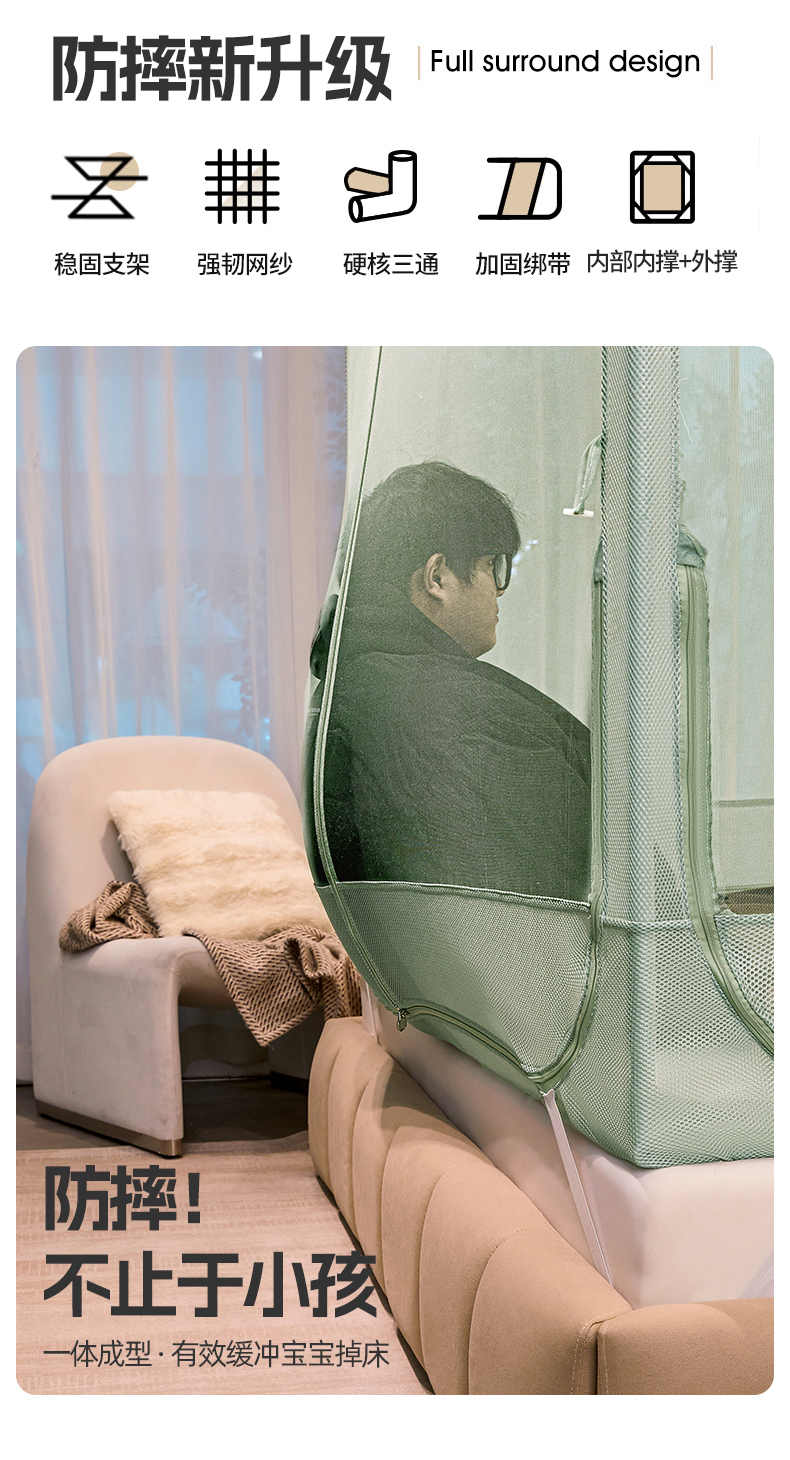 (总)夏彩 2025新款五面保暖亲肤面料坐床拉链四季款蚊帐-88632,星愿熊,拉贝贝,羽飞舞,支架,保暖顶-灰色,保暖顶-粉色,保暖顶-绿色