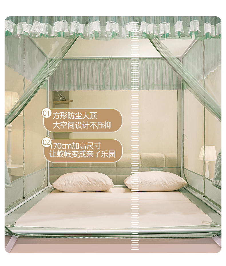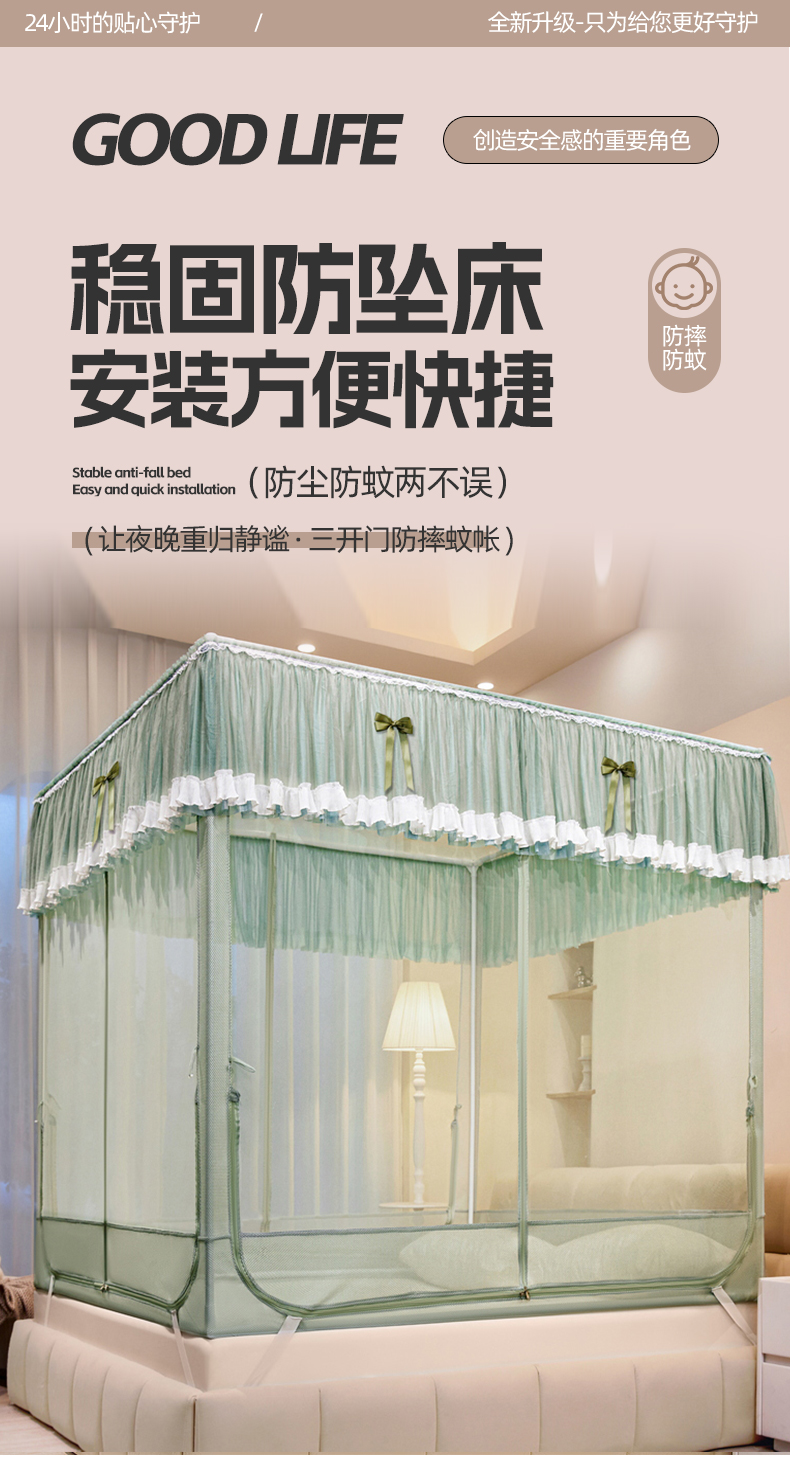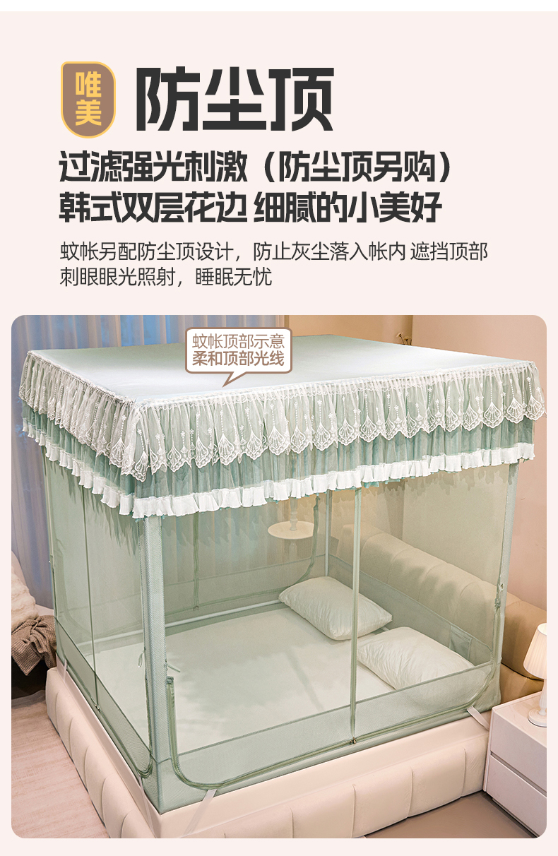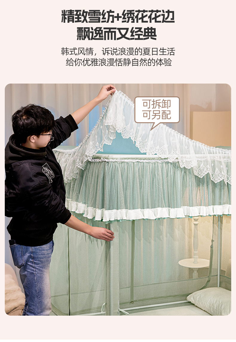 (总)夏彩 2025新款蕾丝U型防摔坐床蚊帐-88630,绿雅灰,藕玉色,香槟色