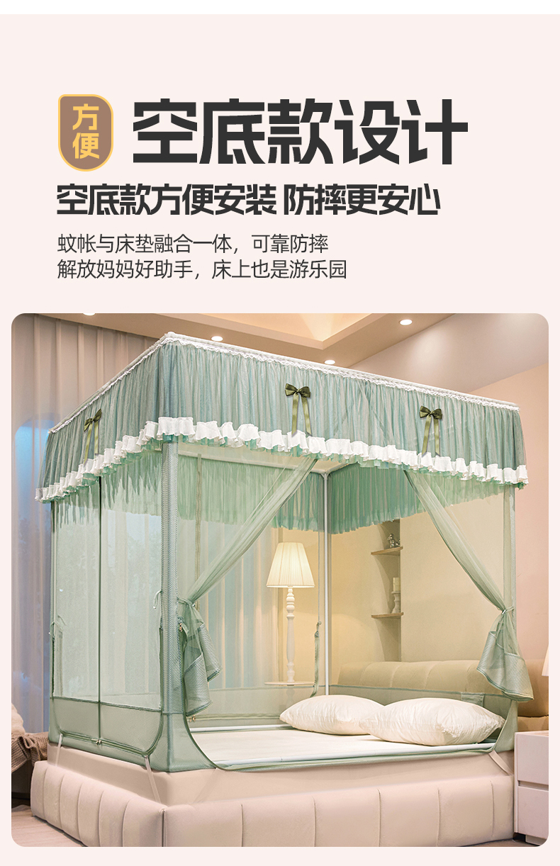(总)夏彩 2025新款浪漫唯美T+U床笠式坐床外穿防摔蚊帐-88610,886610冰海蓝,886610极光白,886610浅粉玉,886610浅水蓝,886610蔷薇粉,886610杏仁黄,886610雅士灰