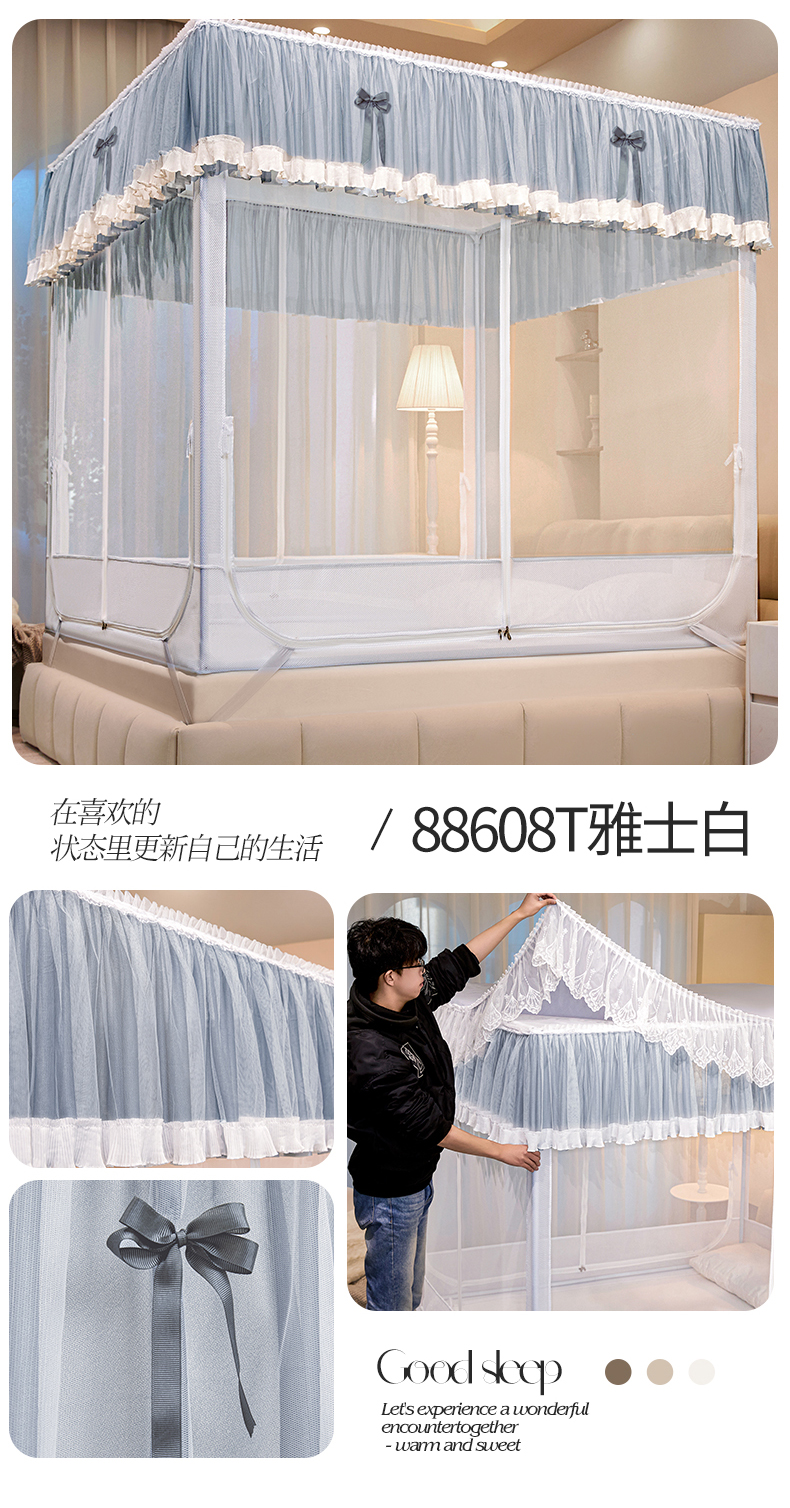 (总)夏彩 2025新款豪华宫廷蕾丝睡帐-88599,88599-公主白,88599-公主粉,88599-公主玉,88599-蓝灰色