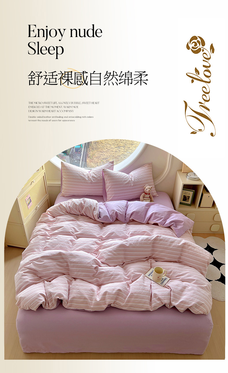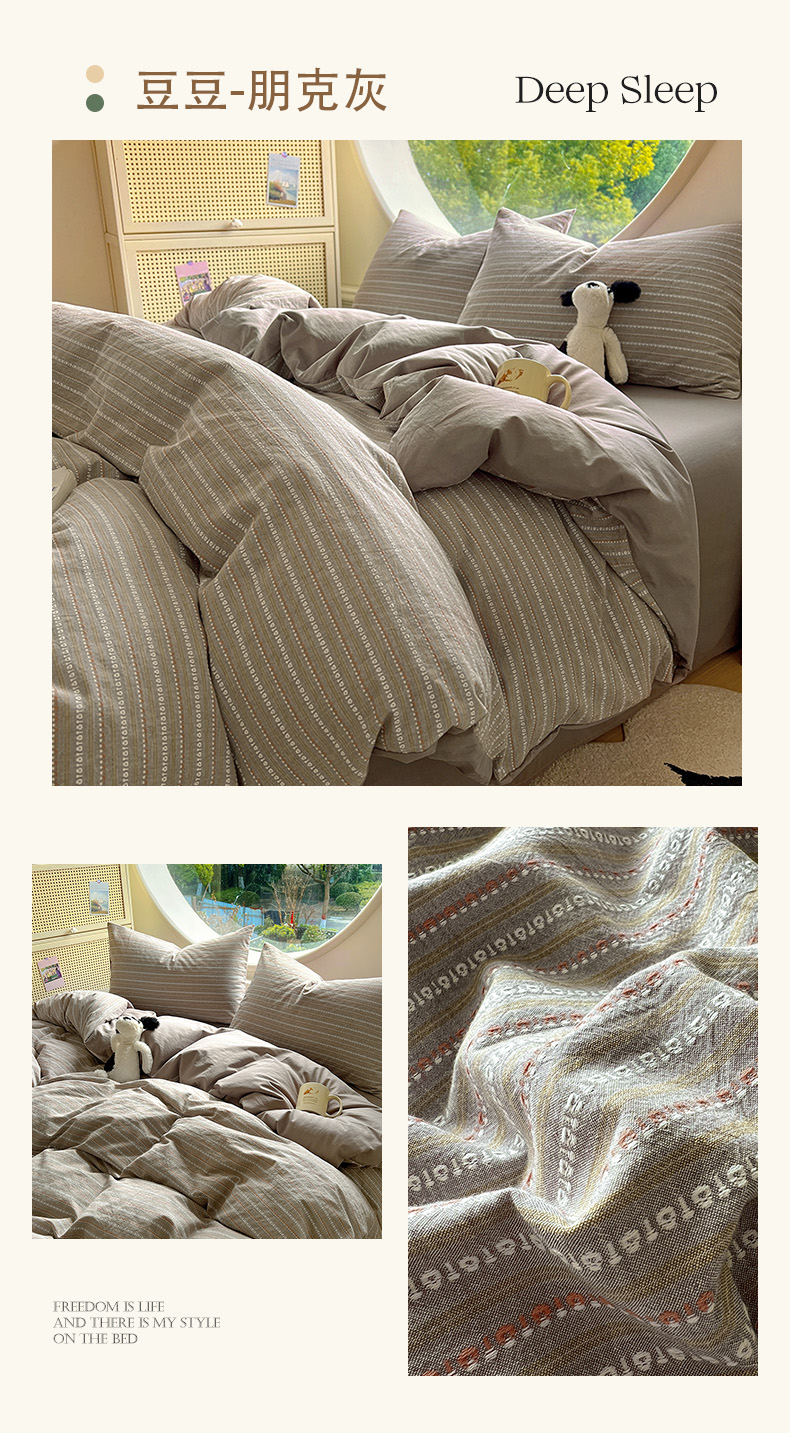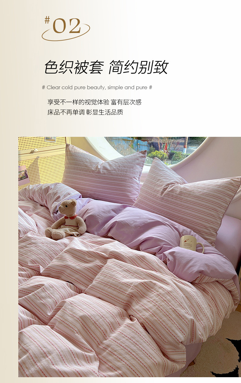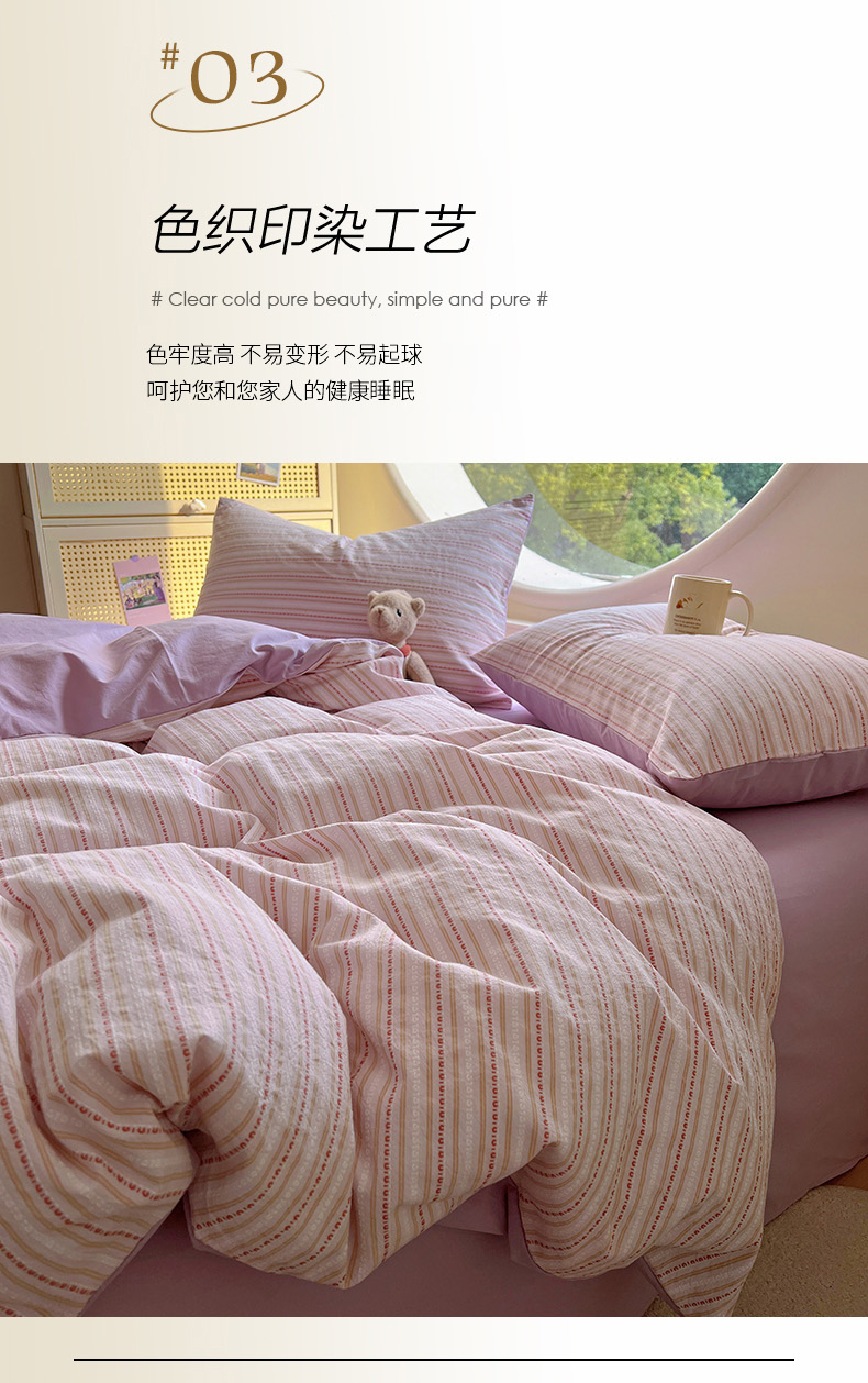 商品名称:田野家纺2025新款全棉水洗棉提花豆豆系列四件套 水洗棉豆豆 雾紫