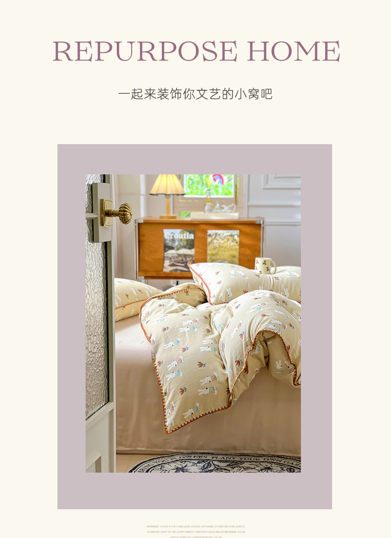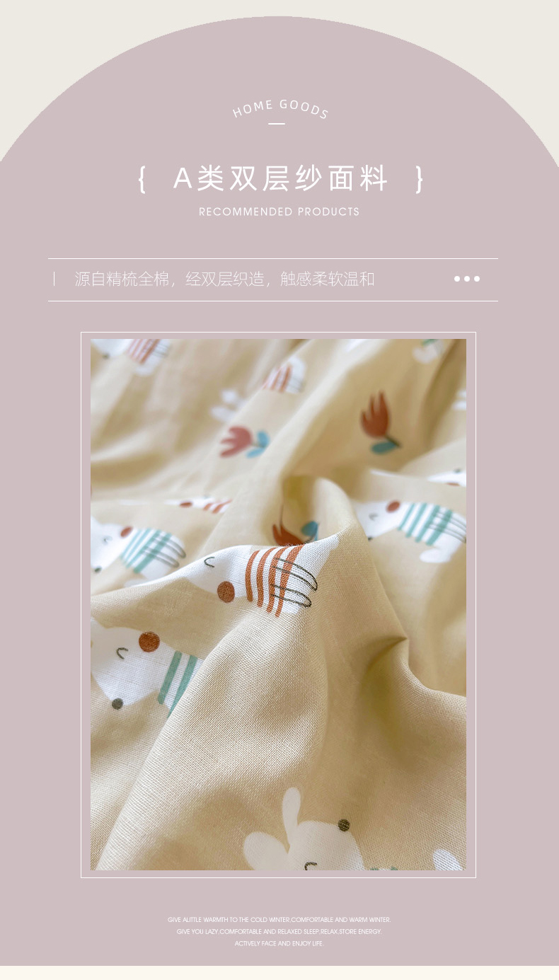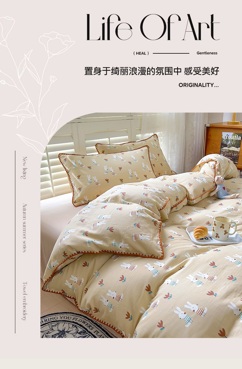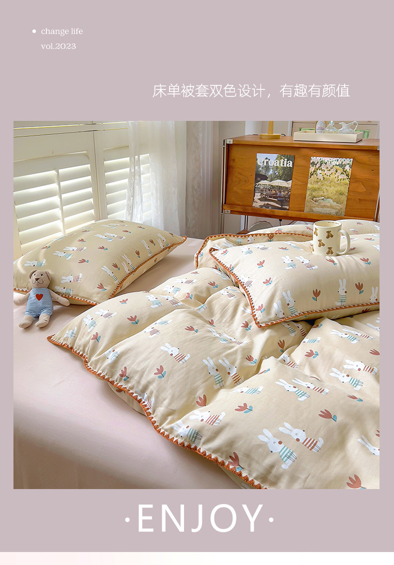 商品名称:田野家纺2025新款A类全棉双层纱四件套 波波兔