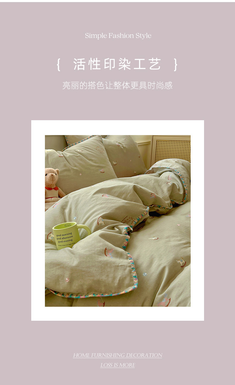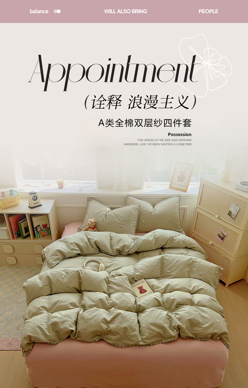 (总)田野 2023新款全棉A类贝壳边双层纱四件套,饼干熊,波波兔,呆萌熊,萌宠乐园,萌兔森林,甜心小兔,薇拉,小蘑菇,伊甜