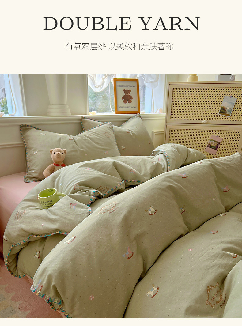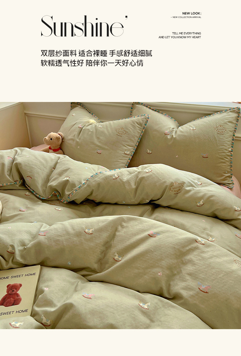田野家纺2025新款A类全棉双层纱四件套 旋转木马
