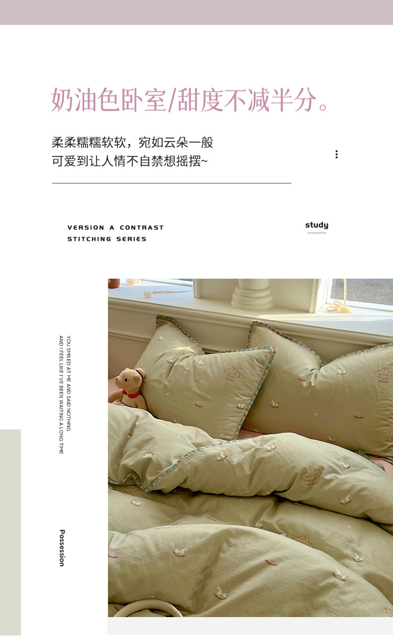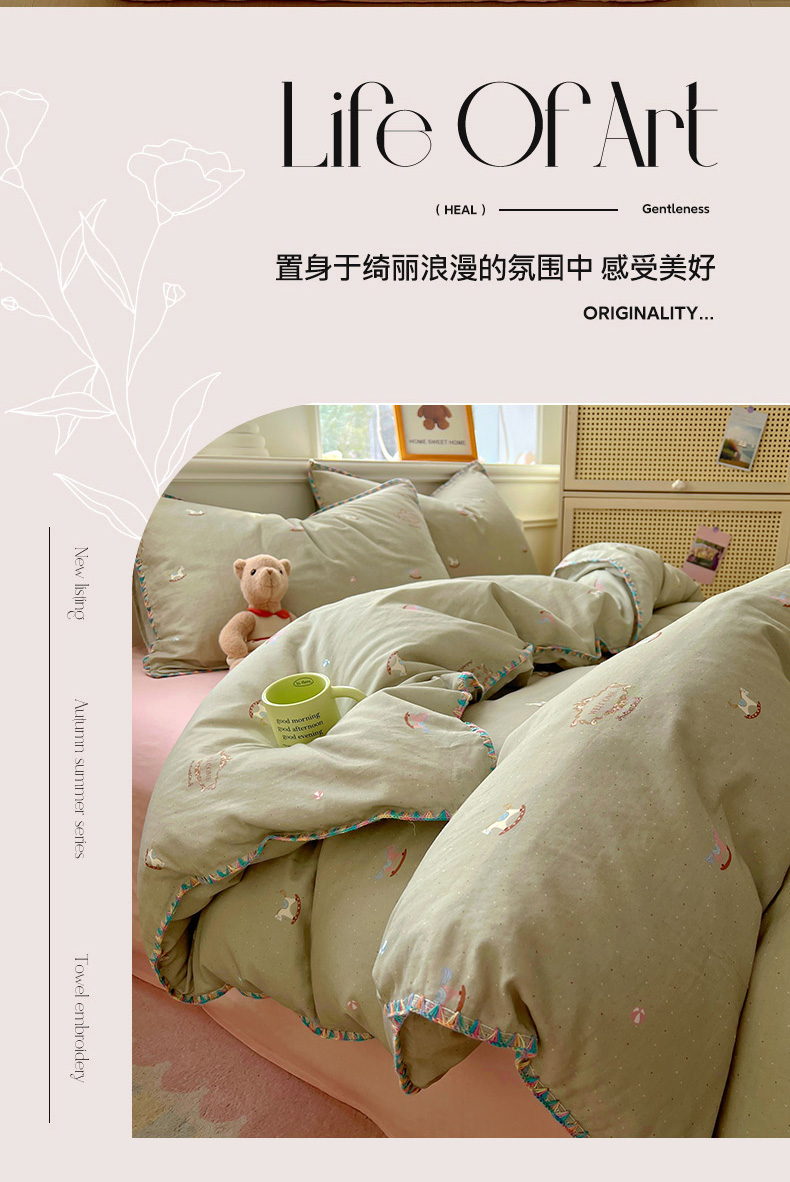 (总)田野 2025新款全棉水洗棉提花四件套,花田,花颜,帽子狗,蘑菇,飘带,泰迪狗,小树林-咖,小象,小雨点,樱桃-绿