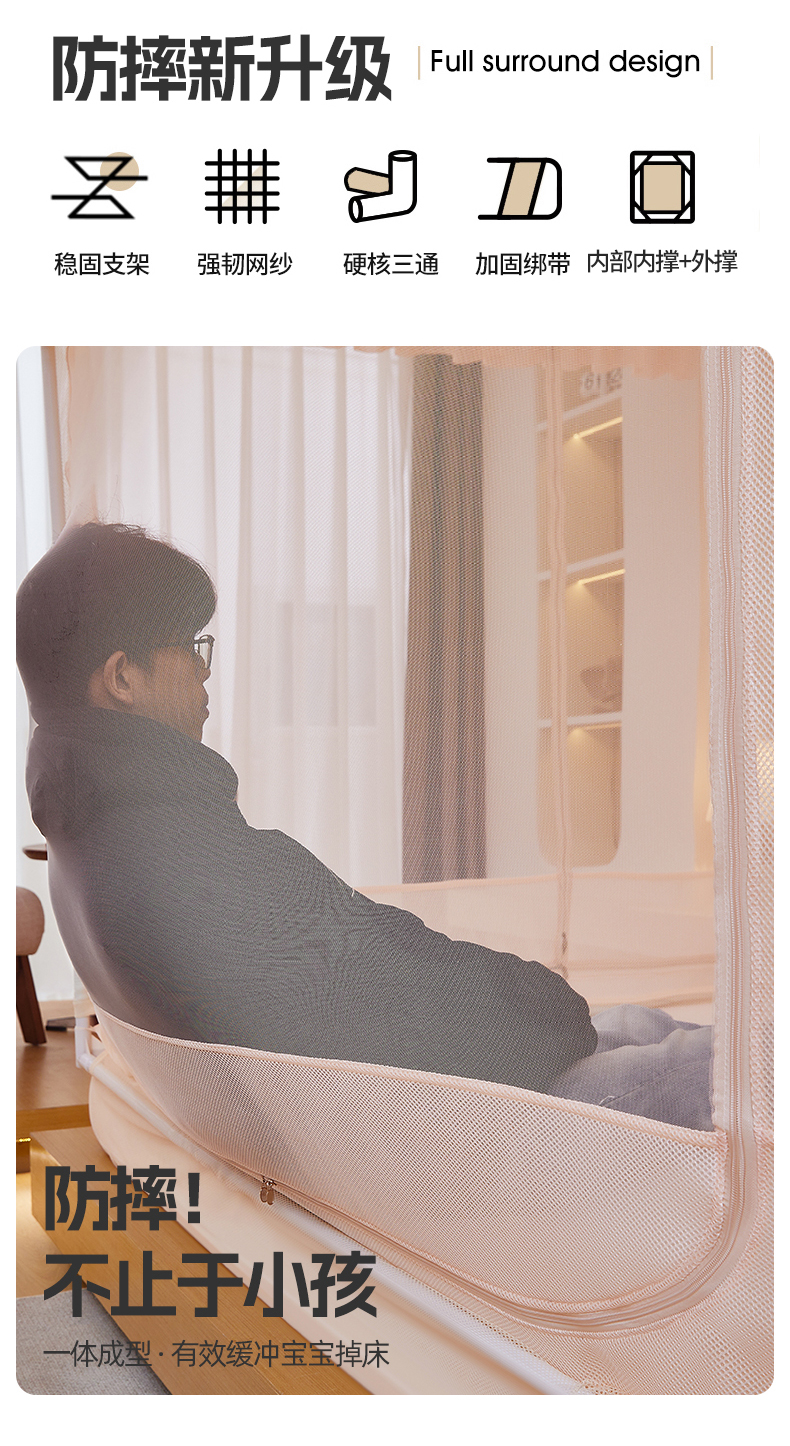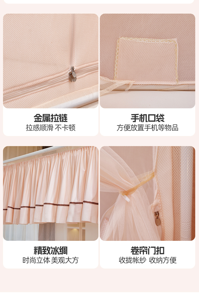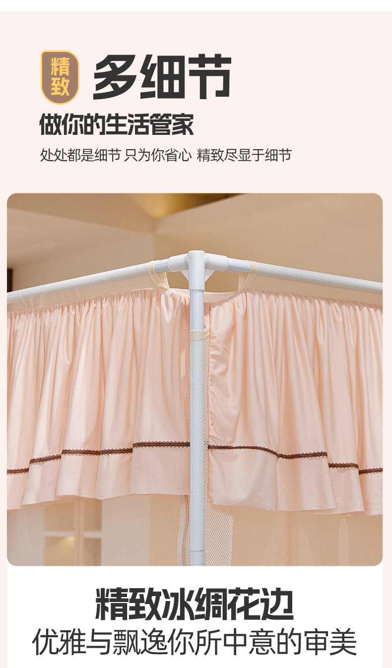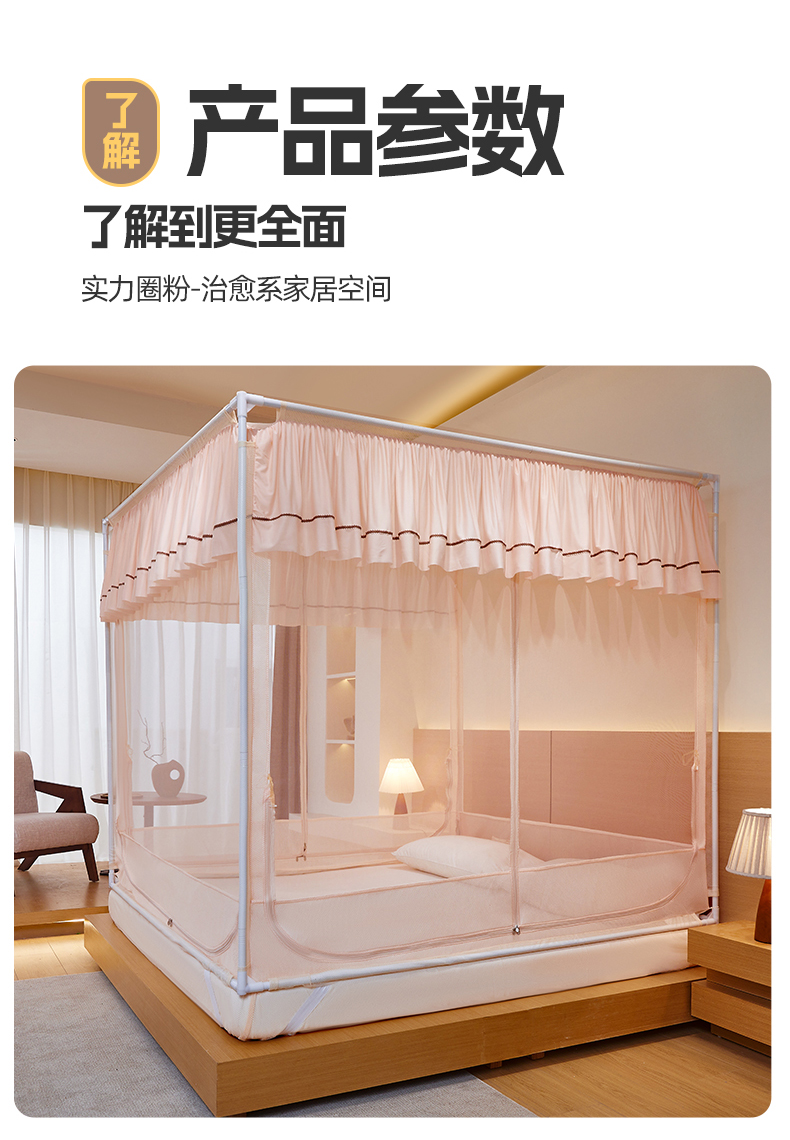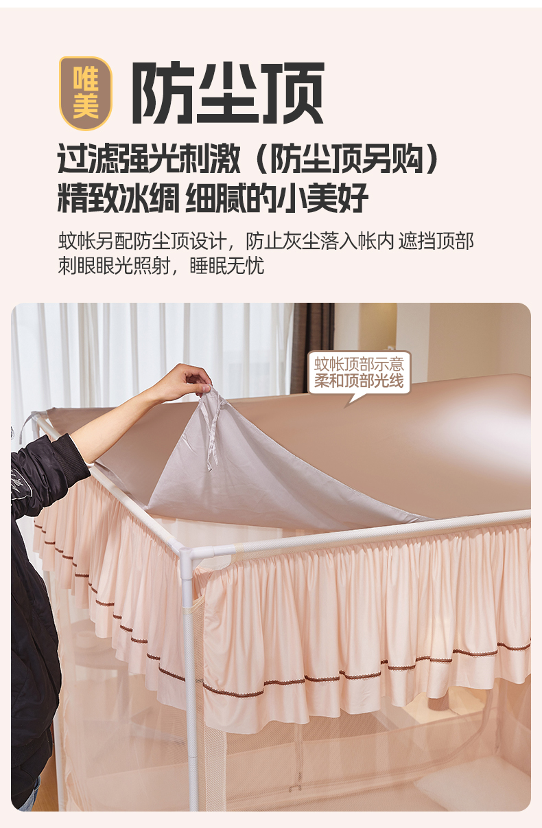当前位置: 91家纺网 > 商品网购 > 床上用品 > 蚊帐 > 坐床式蚊帐 > 夏彩 2025新款浪漫唯美T+U床笠式坐床外穿防摔蚊帐-88610 886610浅粉玉